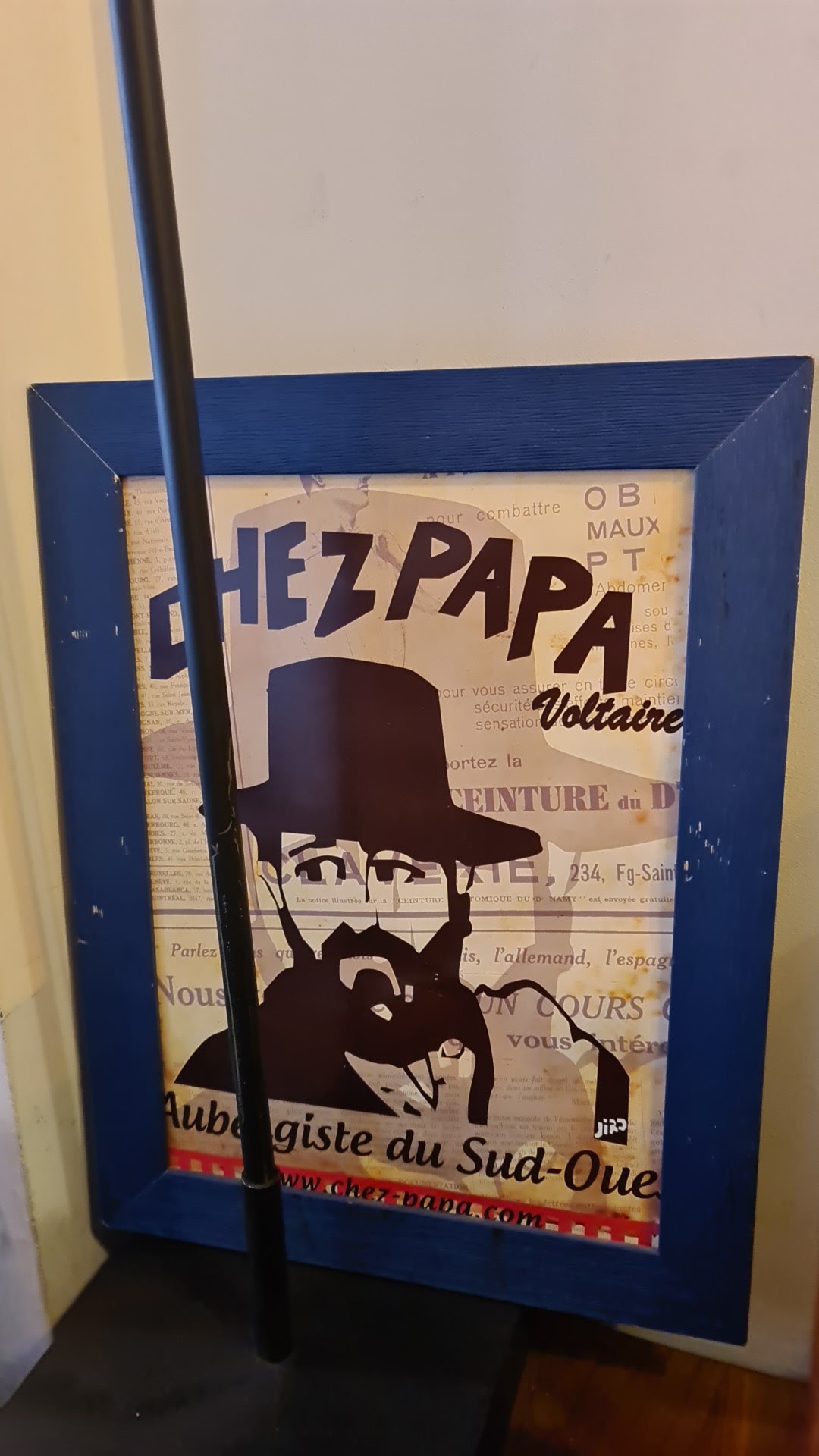 Chez Papa, à Voltaire. Le patron sympathique. La cuisine est toujours aussi bonne, on s'est régalé, avec un délicieux magret de canard et son confit de poireaux, la croustade de pommes, mon seul regret plus de place pour prendre une part une tarte tatin.