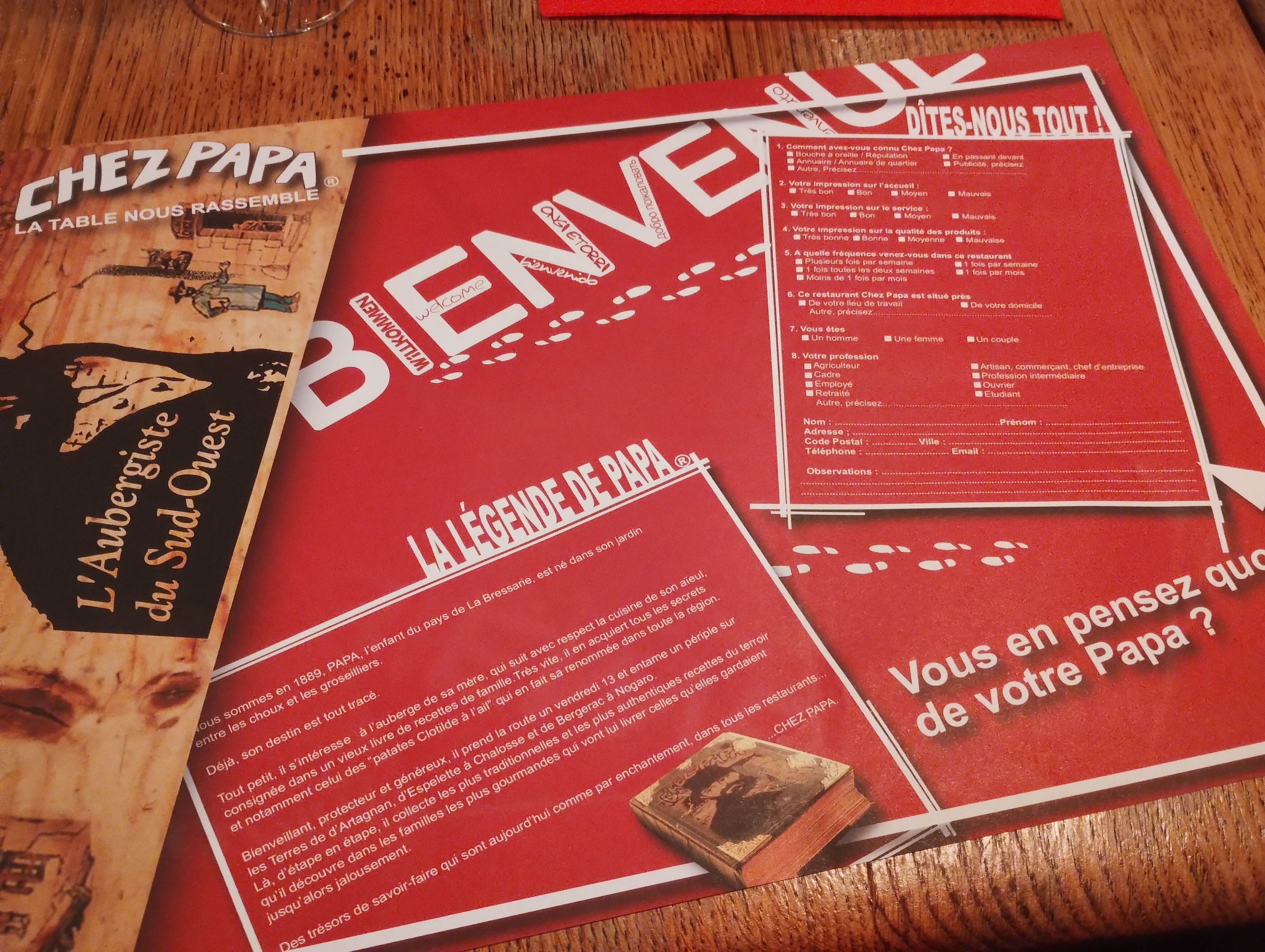 Chez Papa n'est pas seulement un bon restaurant ni une adresse incontournable, Nous avons affaire à une institution. L accueil est au top, le rapport qualité prix, exceptionnel. La quantité est là.. La cuisine du sud ouest pour cadre culinaire, pour les novices je leur conseille d'eux choses : d arriver affamés, et de commander une salade gargantuesque type super papa ou boyarde. Vous m'en direz des nouvelles.