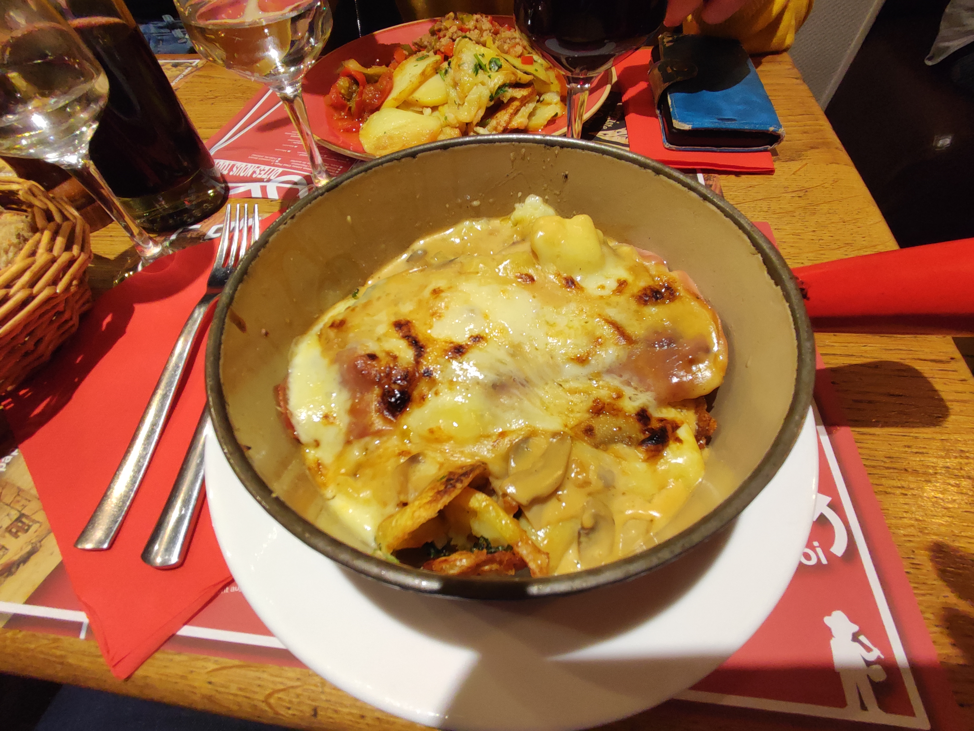 Endroit agréable et rustique dans une ambiance cosy et décontractée. Cuisine française super traditionnelle avec de grandes portions à un prix raisonnable. Ici vous pouvez trouver la cuisine française traditionnelle locale et ils ont une variété de choix. Nous avons commandé une « escalope de canard auvergnate » et une « entrecôte », les deux plats étaient très savoureux et la viande était moelleuse avec un bon fromage sur le dessus. Je ne sais pas si vous avez besoin d'une réservation, car je suis arrivé si tard et j'ai été surpris de constater qu'ils étaient toujours ouverts et nous servaient de la nourriture.