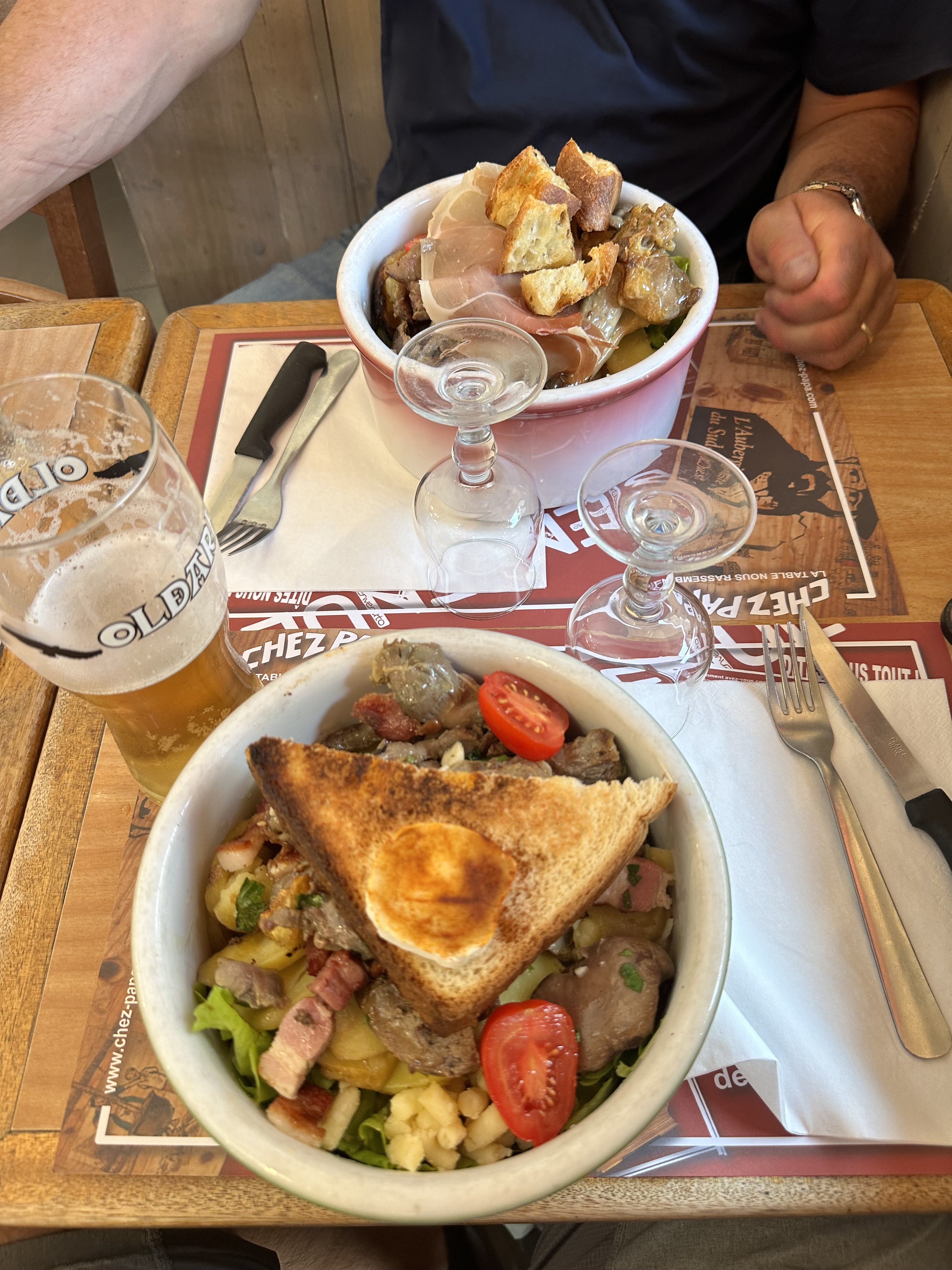 La salade Super Papa est énorme et regorge de produits du sud ouest qui font plaisir aux papilles ( pas des masses au régime clairement =/ ), elle varie un peu selon les saisons ou restaurants mais c'est toujours un plaisir qui vous cale pour le reste de la journée !
