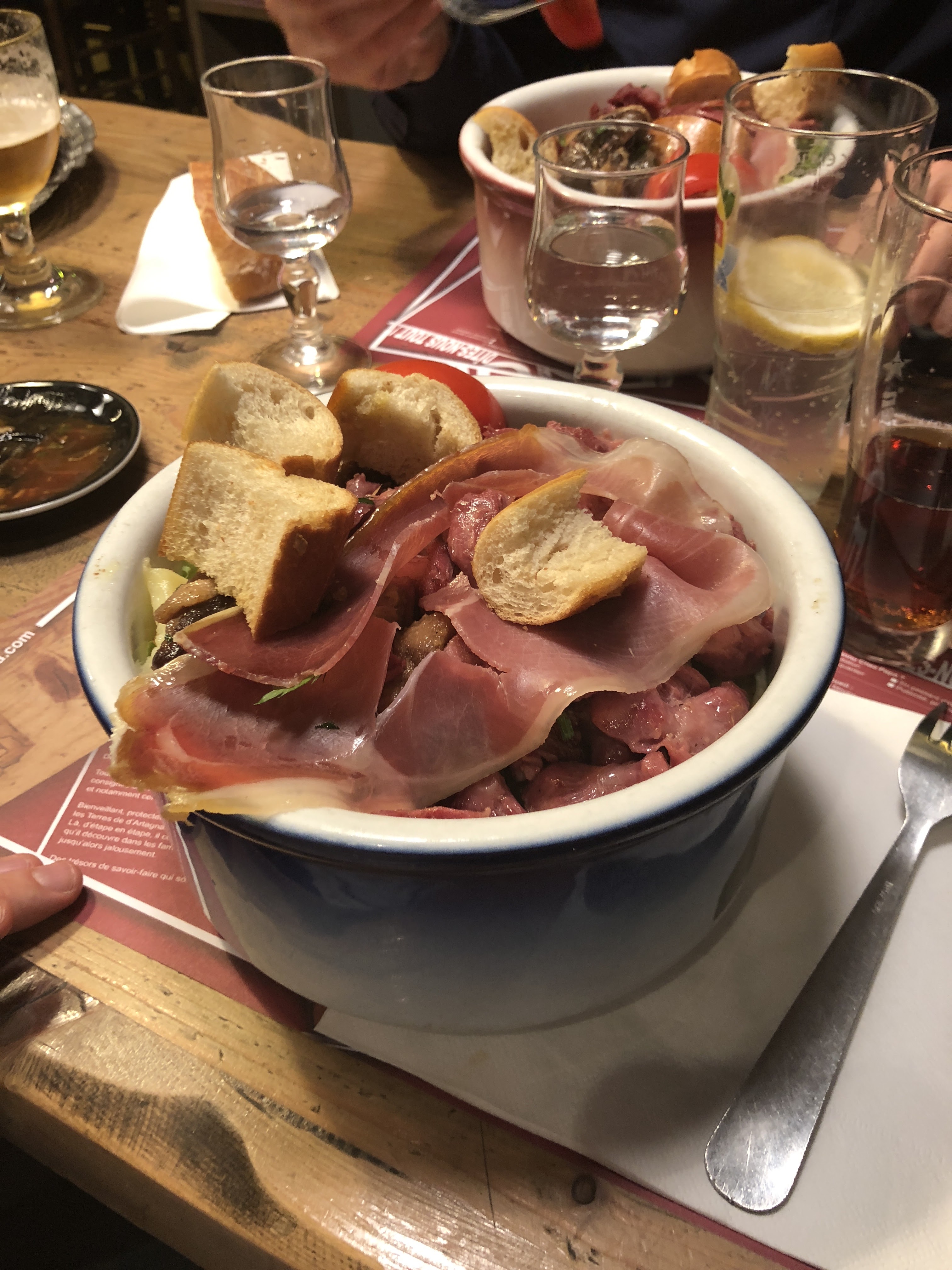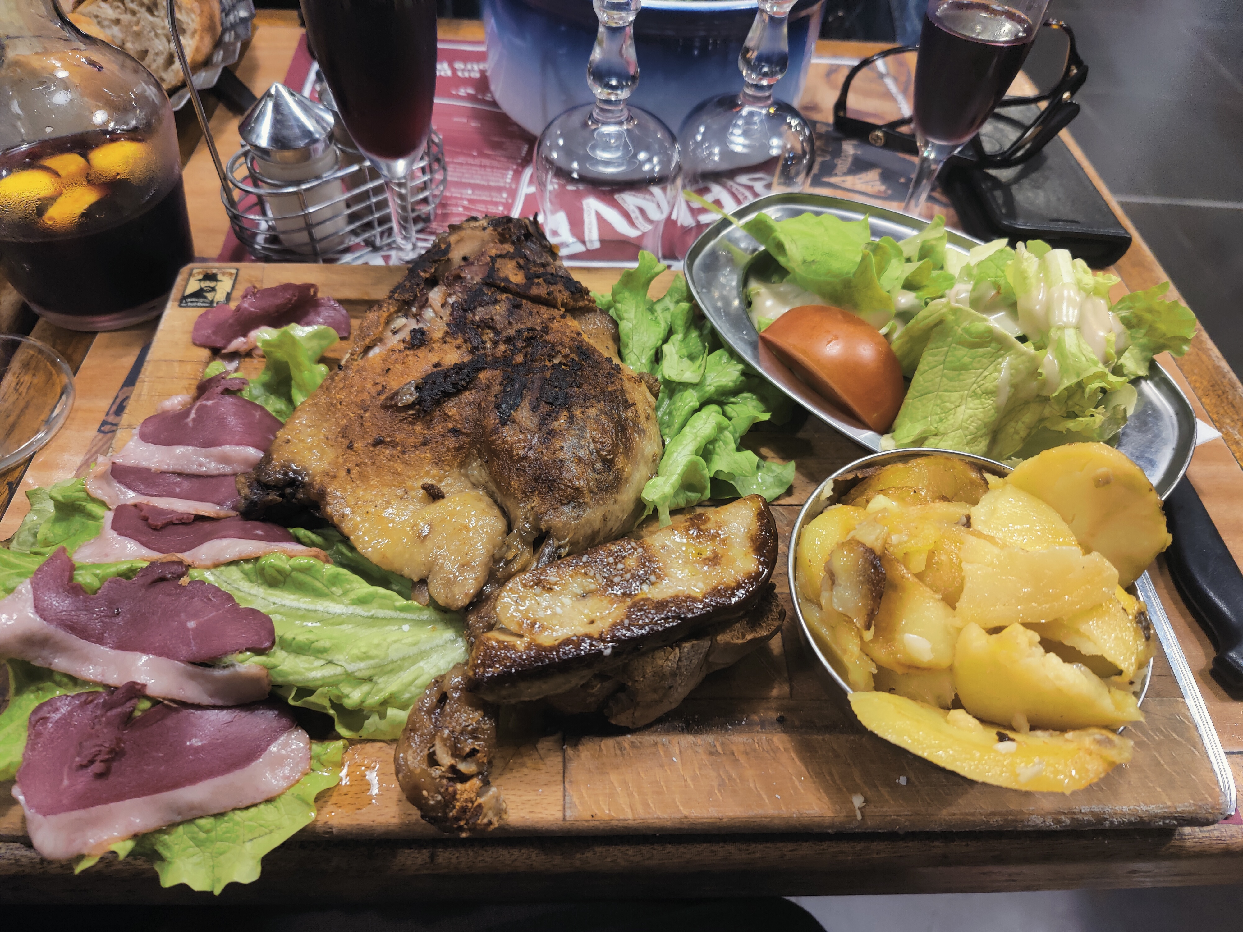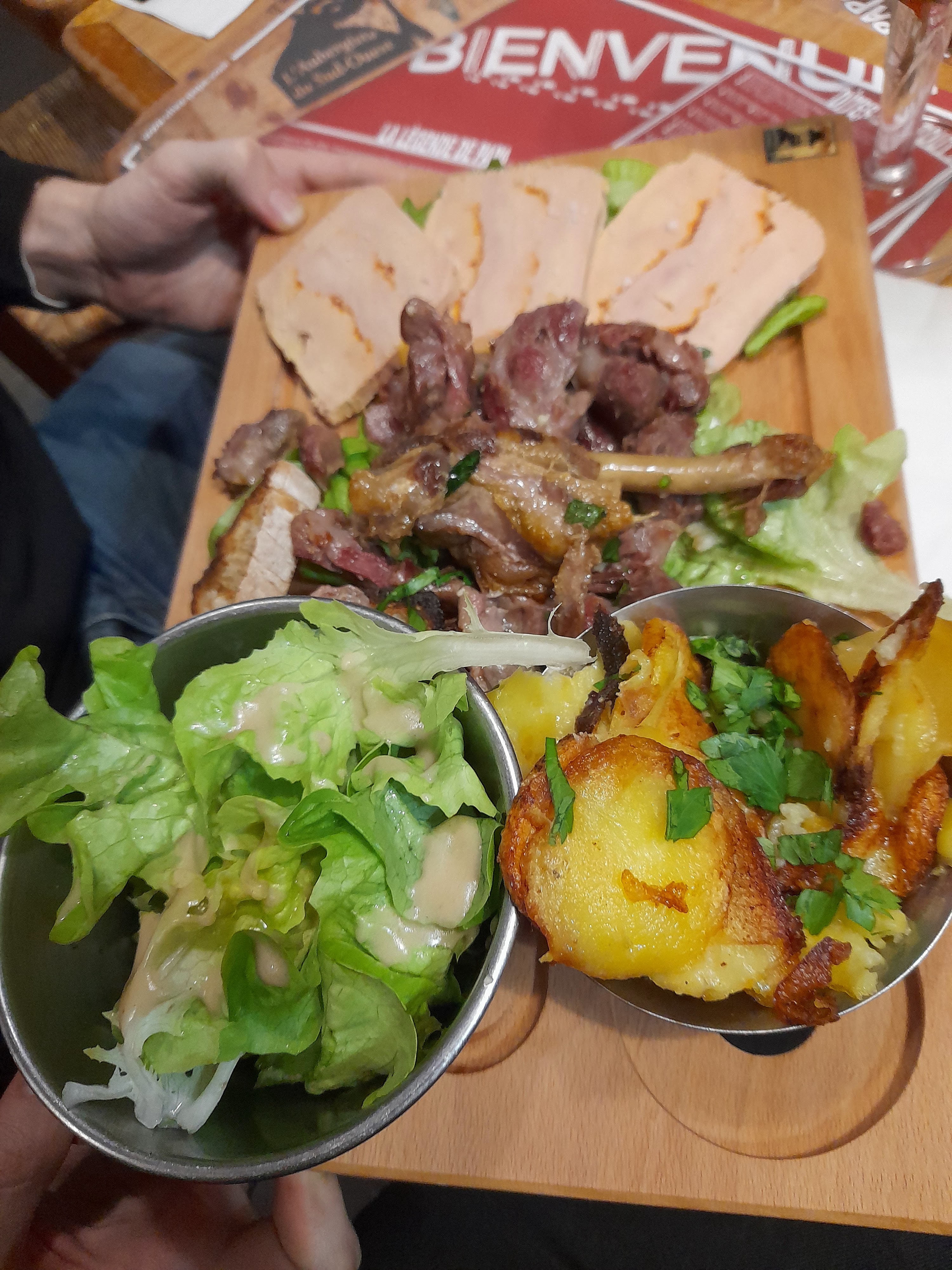 Un truc de fou ! J’ai pris là salade Landaise et j’ai l’impression d’avoir fait un repas de communion ! Magret, salade, tomates, pommes de terre sautées, jambon fumé, croûtons... Bref une quantité gargantuesque ! Côté goût ce n’est pas du radinèrent mais de la bonne cuisine du sud ouest, bien goûteuse et bien copieuse. Vous en aurez pour votre argent...