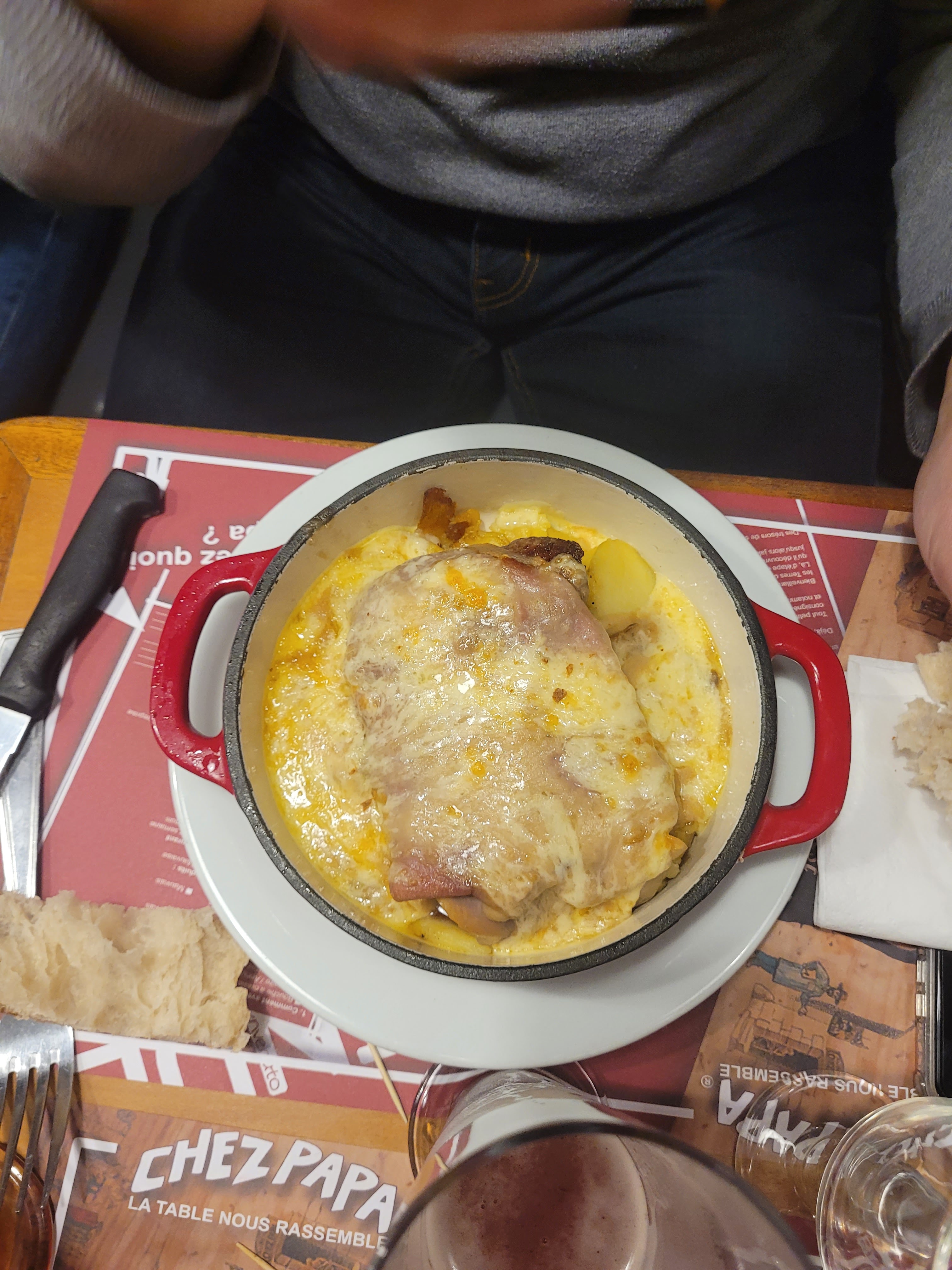 Menu midi = plat + dessert : escalope de volaille gratinée au cantal ainsi que le tiramisu étaient exceptionnel ! Très bon et bonne ambiance dans le restaurant. Si vous êtes dans le coin, n’hésitez pas à venir manger CHEZ PAPA ! 😁