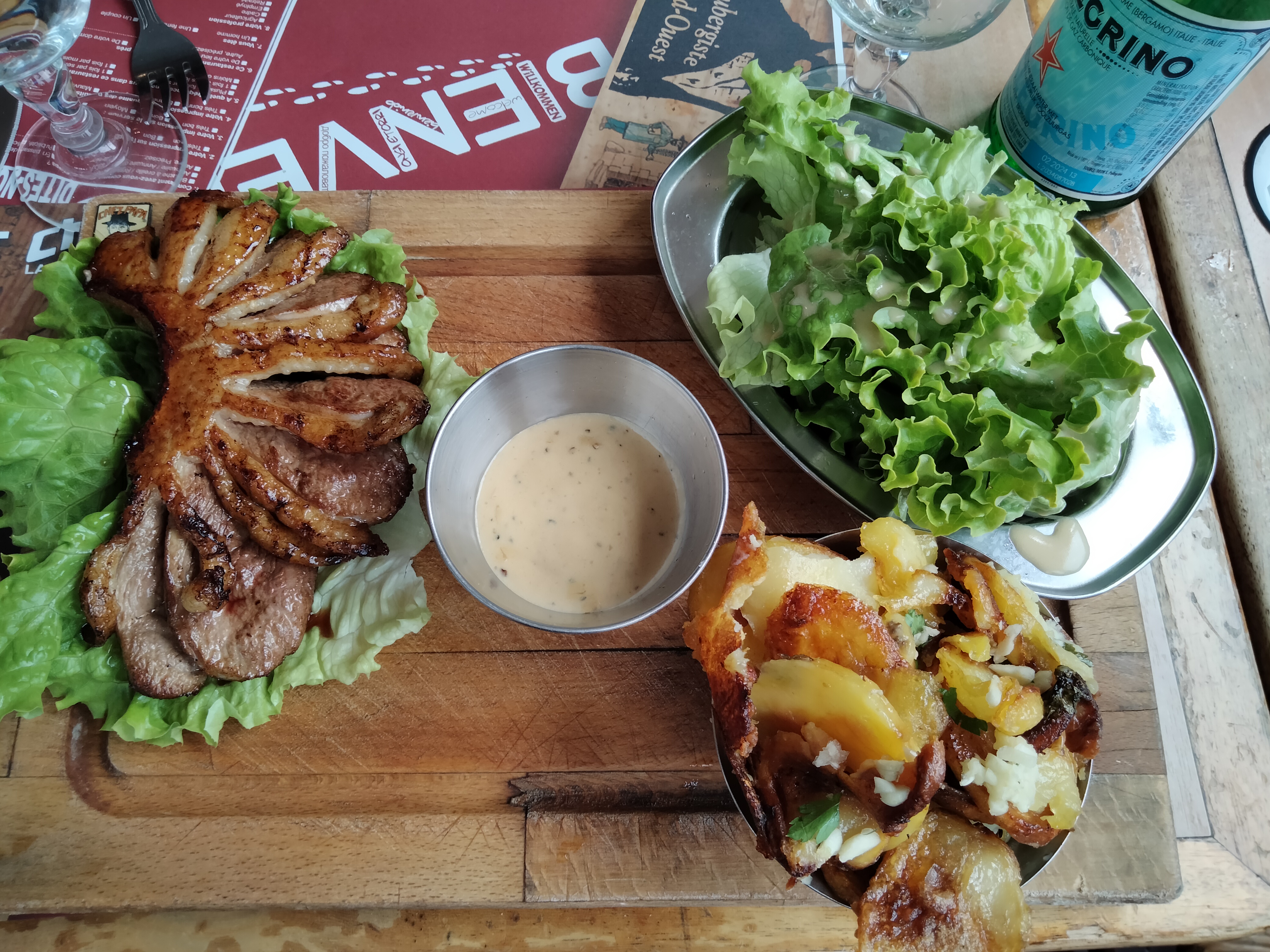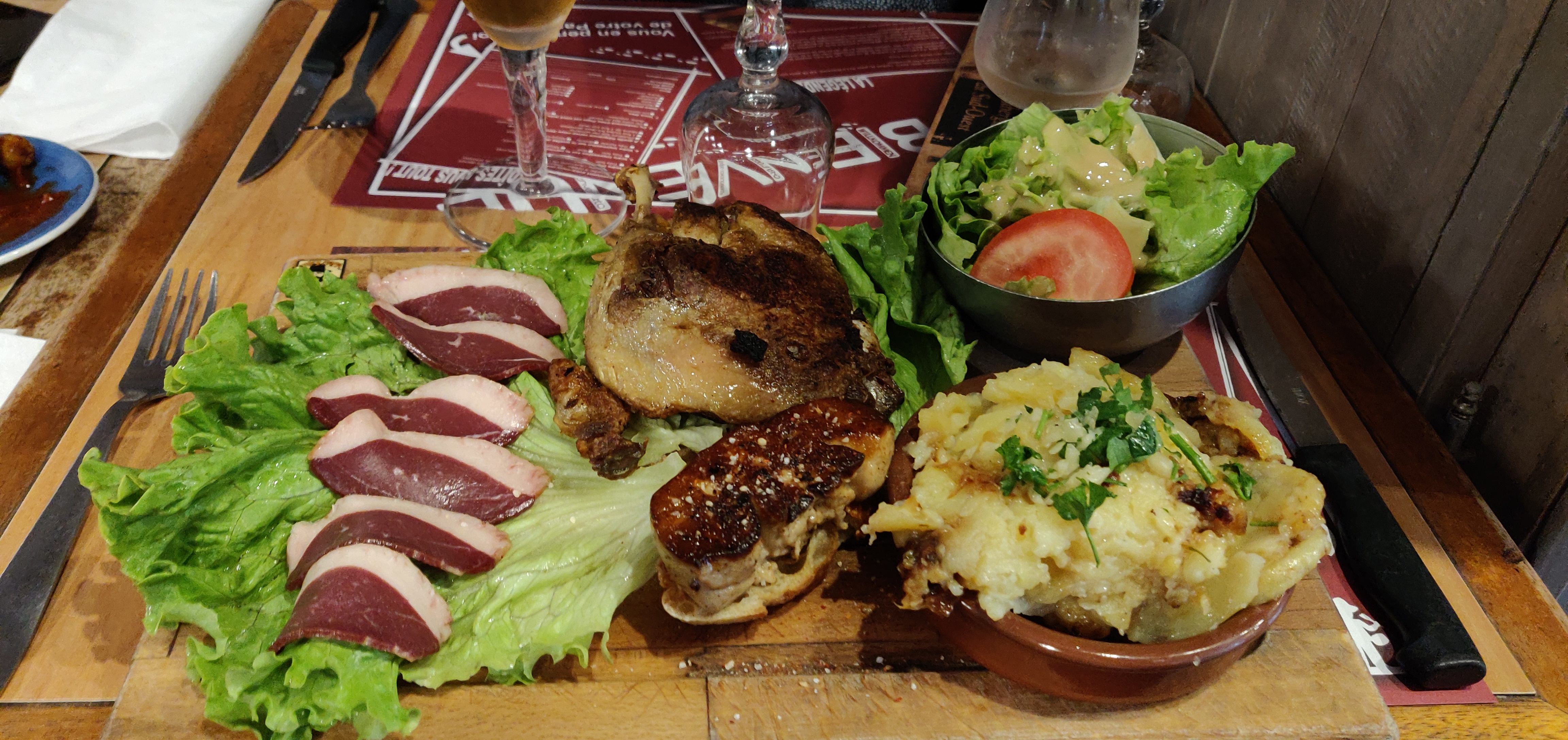 Au début on trouve celà un peu coûtant, puis on voit arriver les plats : vraiment généreux ! Un choix dans la carte principalement centrée sur le canard... Nous avons apprécié.
