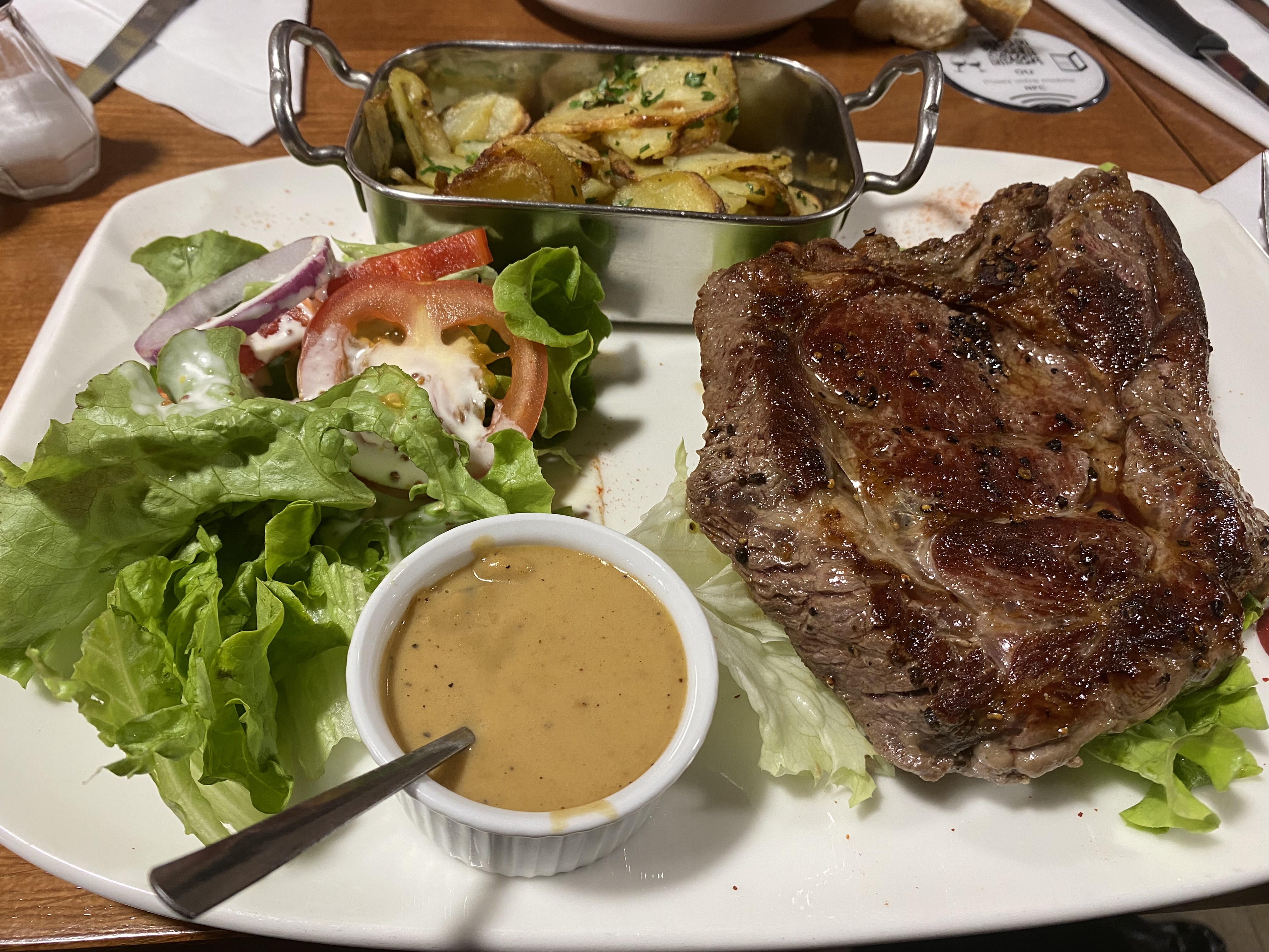 Je suis venue 2 fois dans ce restaurant juste à côté de cher moi , très surpris restaurant très propre et l'accueil Rien a redire que sa soit le responsable de salle et même le patron viens vous dire bonjour une fois qu'on et installer a table première fois que je voie sa bravo La première fois que je suis venue j'avais pris une côte de bœuf excellente et la 2 ème fois je me suis laissée tenter part une entrecôte pareille excellente. Bravo à toute l'équipe continuer comme ça Maintenant c'est mon restaurant de prédilection 😉