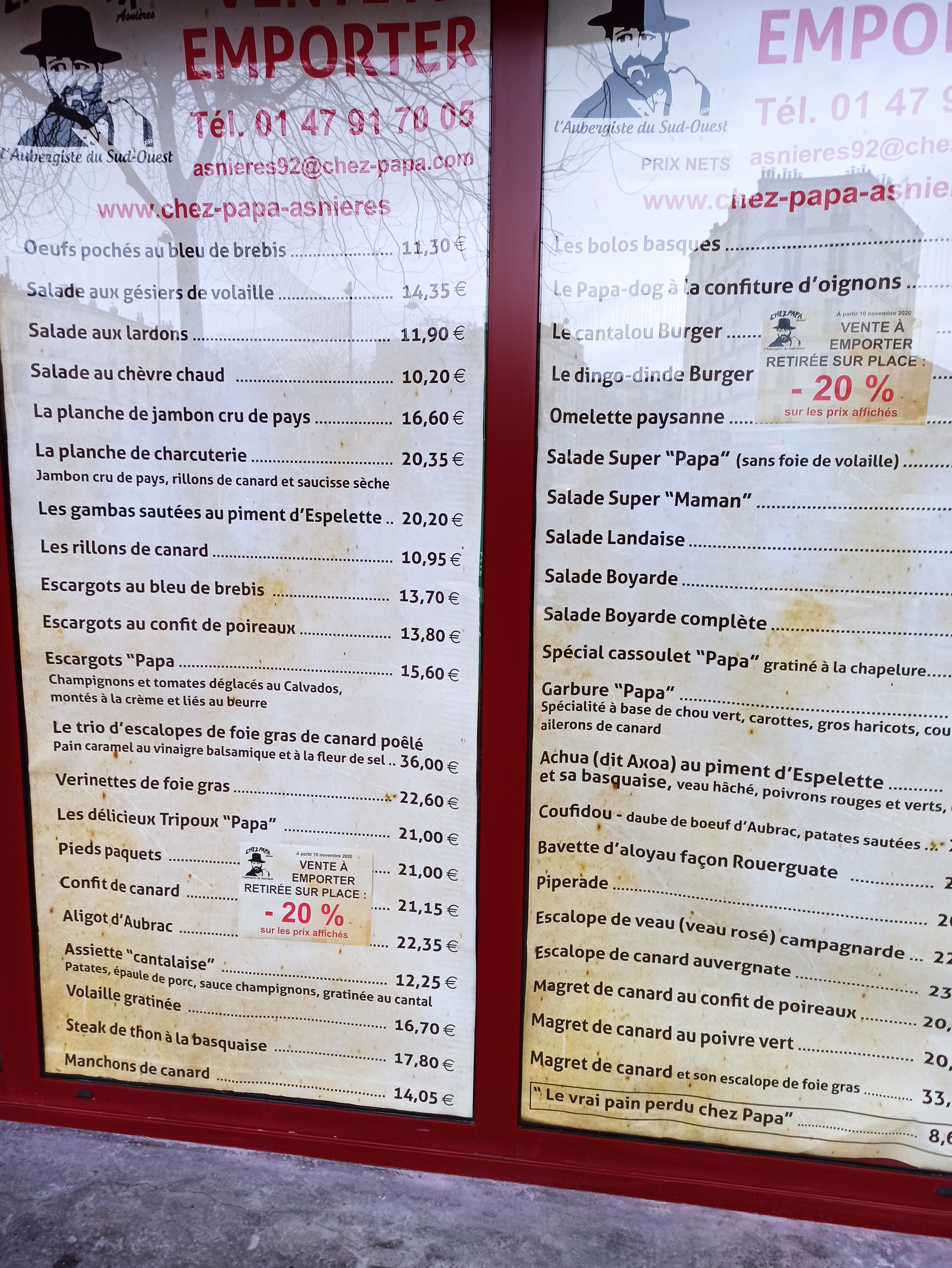 Très bon accueil, service rapide et attentionné, mon entrecôte était excellente et le cassoulet copieux et gourmand. Le patron est très attentif aux règles sanitaires. Bref, chez papa à Asnières il faut y aller !