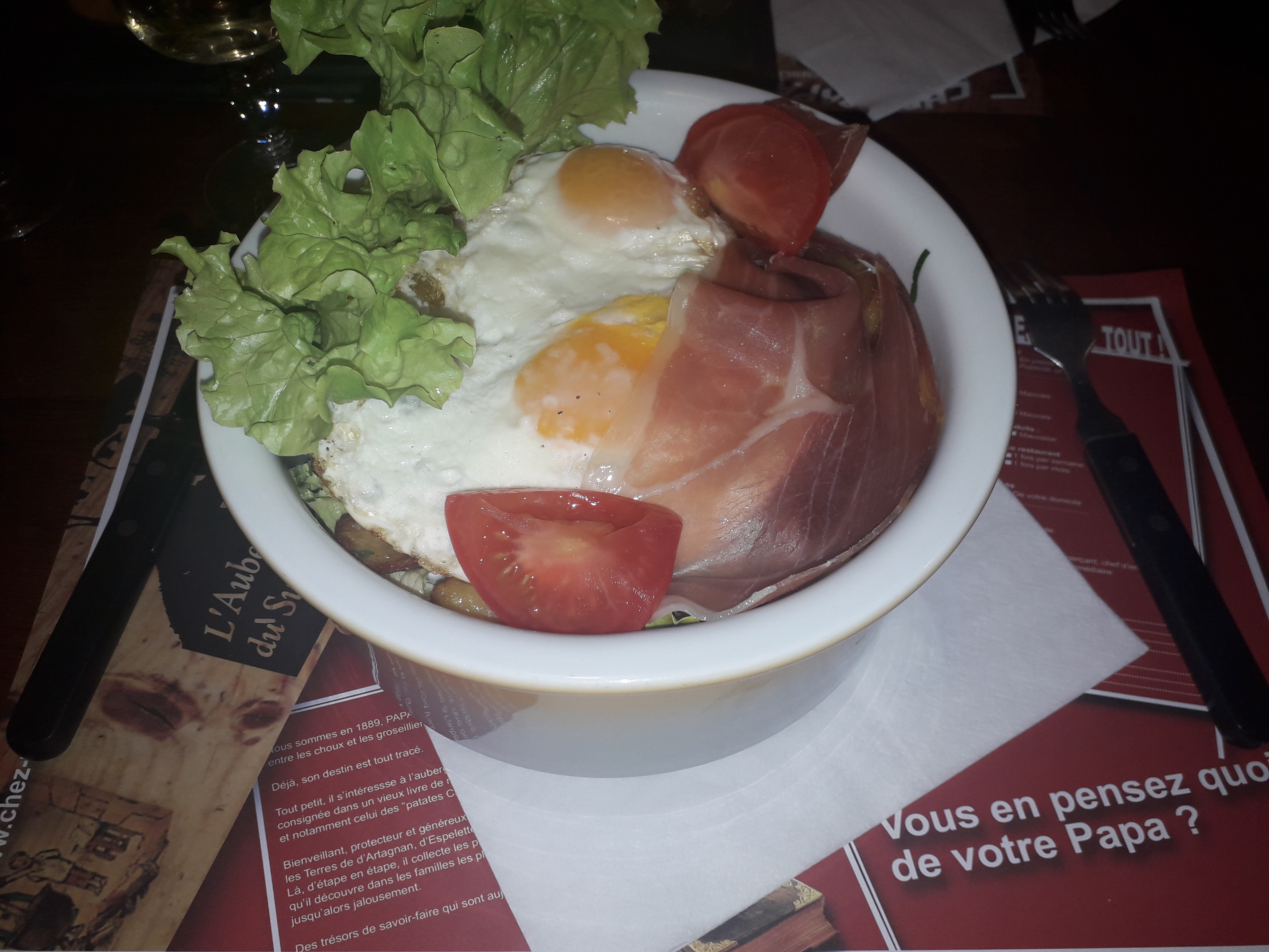 [Quoi de mieux que des retrouvailles chez papa] Pour commencer nous avons pris une planche apéro qui était super, ensuite j’ai enchaîné avec un Superbe cassoulet pendant que mes amis ont pris des salades (très copieuses pour le coup), les serveurs ont l’air un peu bourrés quand ils parlent on comprend pas grand chose mais ils sont très sympas. Toilette à la cave attention aux escaliers en colimaçon pour les grands