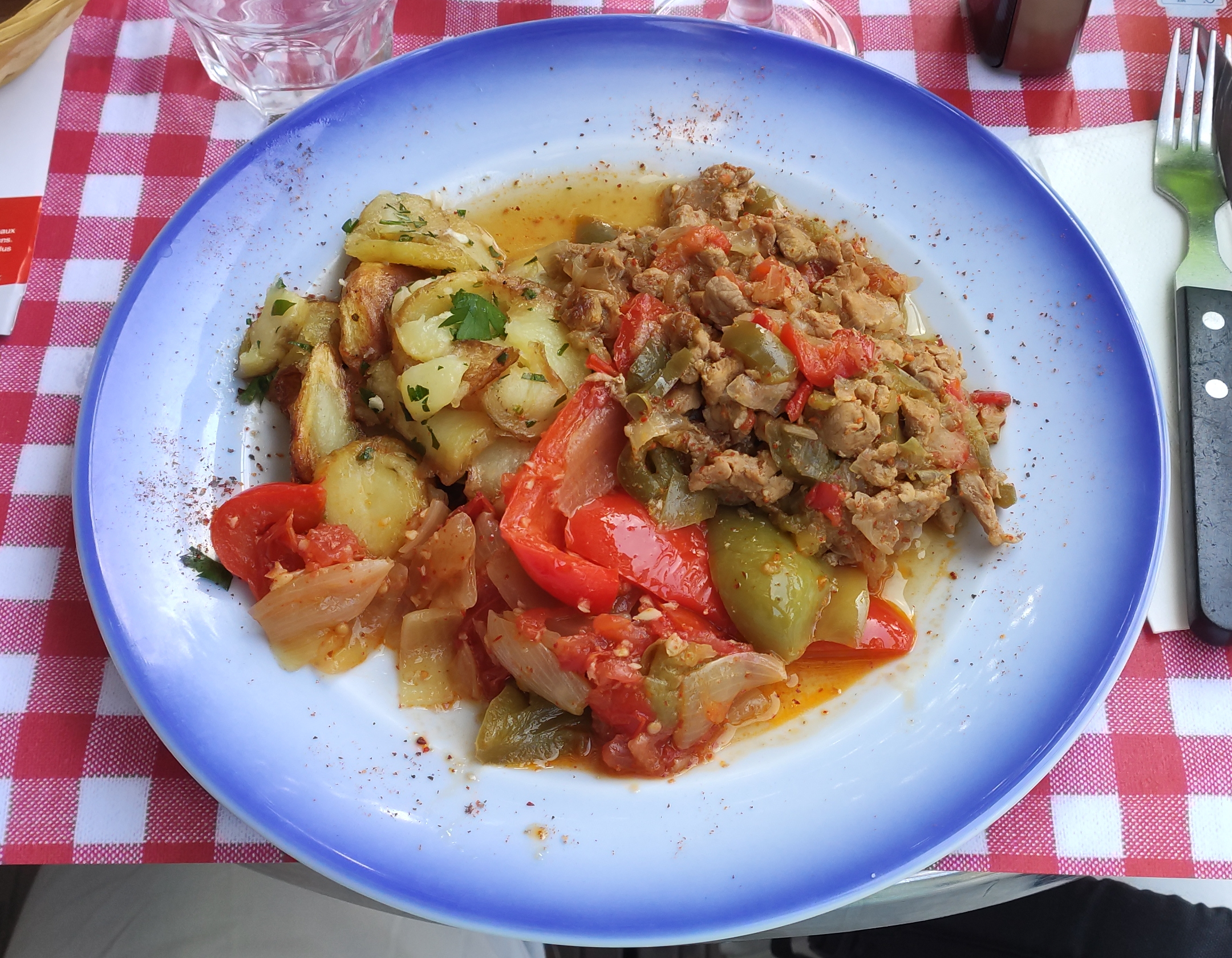 On était affamé et attiré par la promesse d'un repas sentant bon le sud-ouest. J'ai choisi un aligot accompagné d'une côte de bœuf . L'aligot manquait de consistance et ressemblai à une purée mousseline et la côte de bœuf ressemblait davantage à une entrecôte tellement elle était mince. Niveau goût... pas mauvais mais très loin d'etre exceptionnel surtout au regard des prix. Bref. Passable.