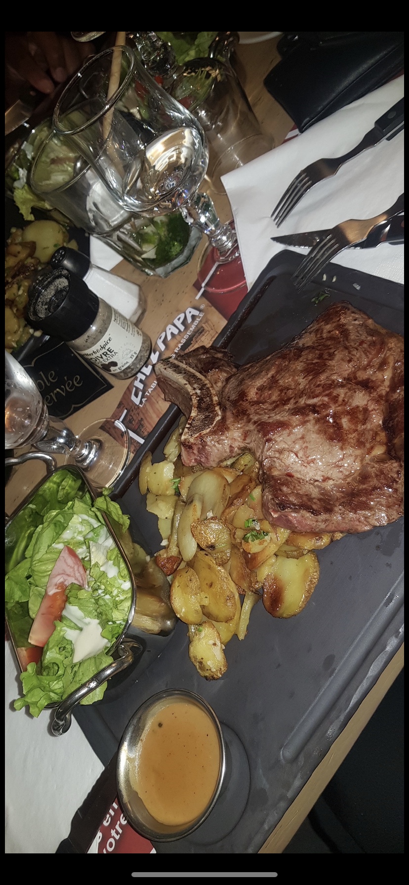 Très belle adresse que je recommande très fortement et je pèse mes mots. Si vous avez un compagnon, un frère ou une soeur même qui aime bien manger chez papa fera votre bonheur. De plus le personnel est au petit soin... muy bene😘😘😘😘 j'ai pris ce jour là une côtelette de 350g. Je peux vous dire que c'était que du bonheur.