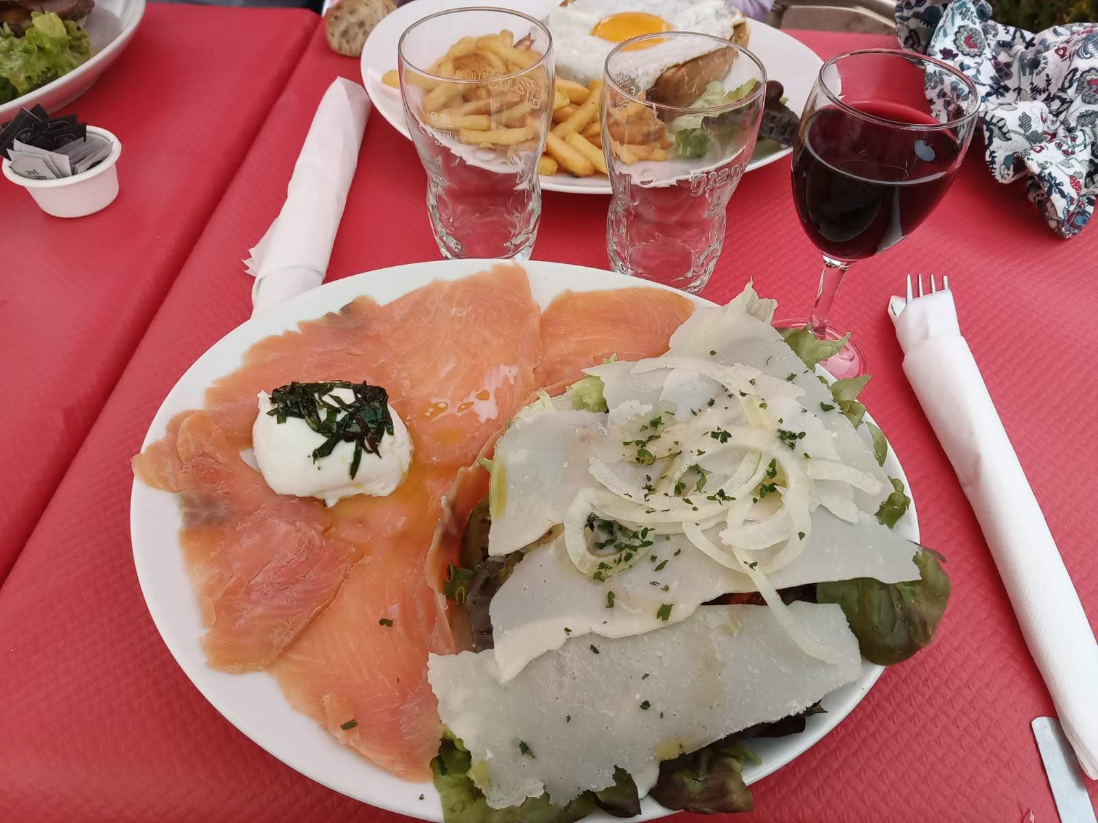 Bon mais gras. Sur ma salade plein de crème fraîche. Sur le saumon plein de l'huile. En tout cas en général c'était bon.