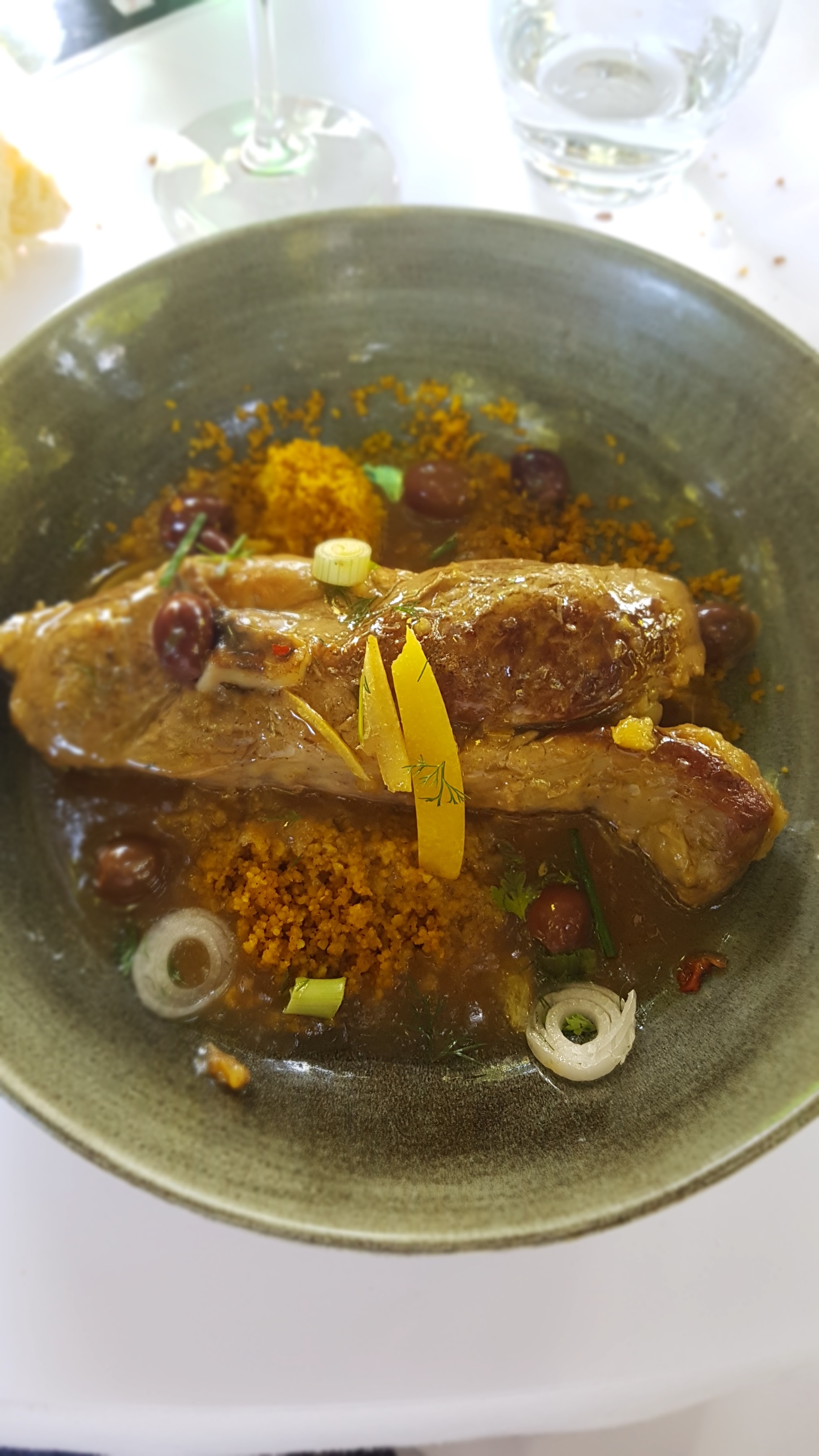 Cadre exceptionnel mais. . Plus de 40 euros le menu du soir pour des encornets cahoutchouteux en entrée, une souris d'agneau servie à moitié froide et un dessert correct : un baba au rhum que vous pouvez noyer sous le rhum grâce à la bouteille qu'on vous laisse à disposition. Pour le vin, un viognier servi pas assez frais mais en le laissant dans le seau à glace, on s'en sort honorablement. Bref, c'est classe, on passe un bon moment mais ça reste cher si on s'arrête sur la qualité des plats qui vous sont servi.