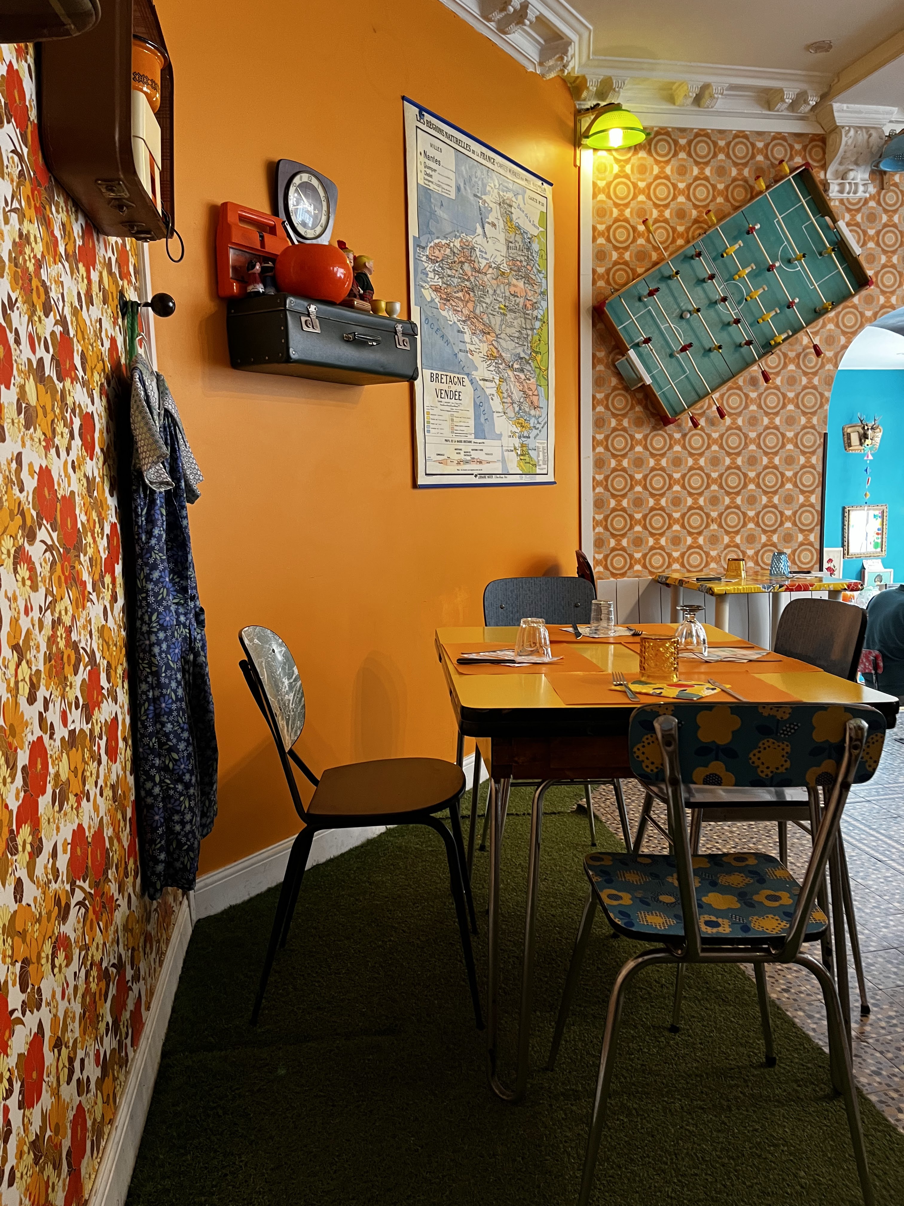 Pour se replonger dans le super kitsch des années 70 ! Tout est simple, frais, goûteux et excellent et servi par une équipe de Paulettes au Top !!! On recommande vivement !!!