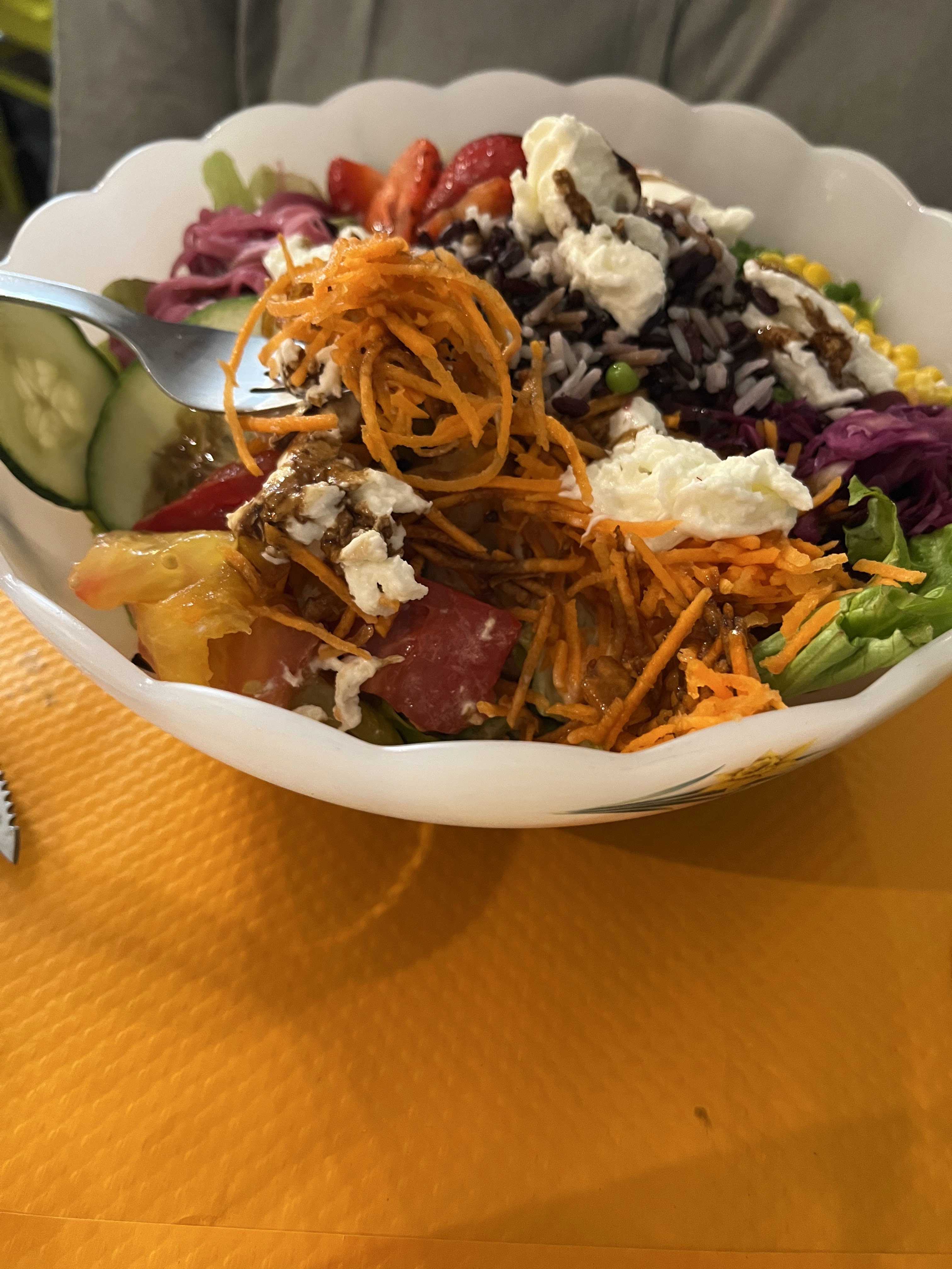 Accueil charmant, très belles salades. Visuellement, un délicieux saut en enfance pour les quinquas!