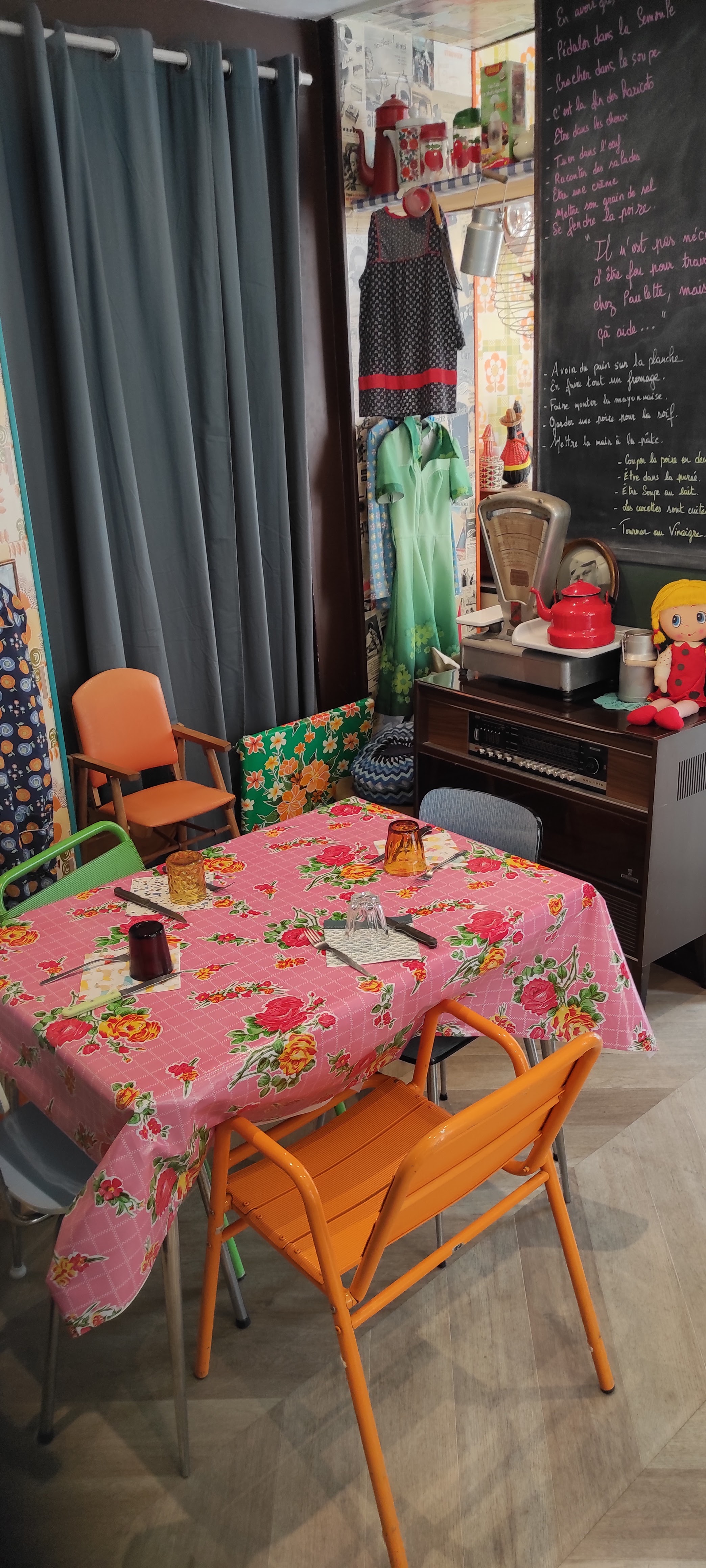 Un énorme coup de cœur, une déco qui nous rappelle notre enfance dans les années 70, des assiettes aussi belles que bonnes et copieuse. Nous avons très bien mangés et en toute simplicité comme si on était de la famille. La propriétaire à beaucoup d´humour et une bonne humeur qui se transmet. Merci beaucoup
