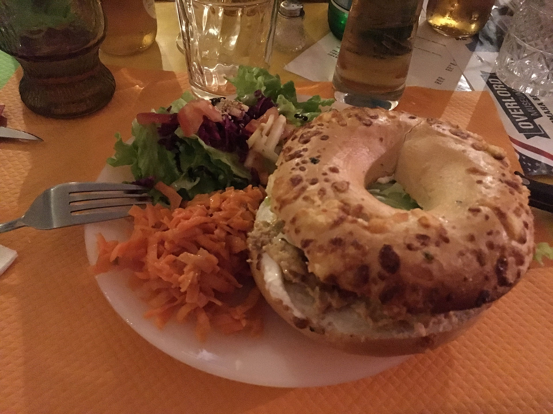 C'était un bon restaurant, mais, il y a un point sur lequel je n'étais pas content, c'est le bagel au poulet et pesto, il était du concentré de sel. Pas d'autre manière de le dire...