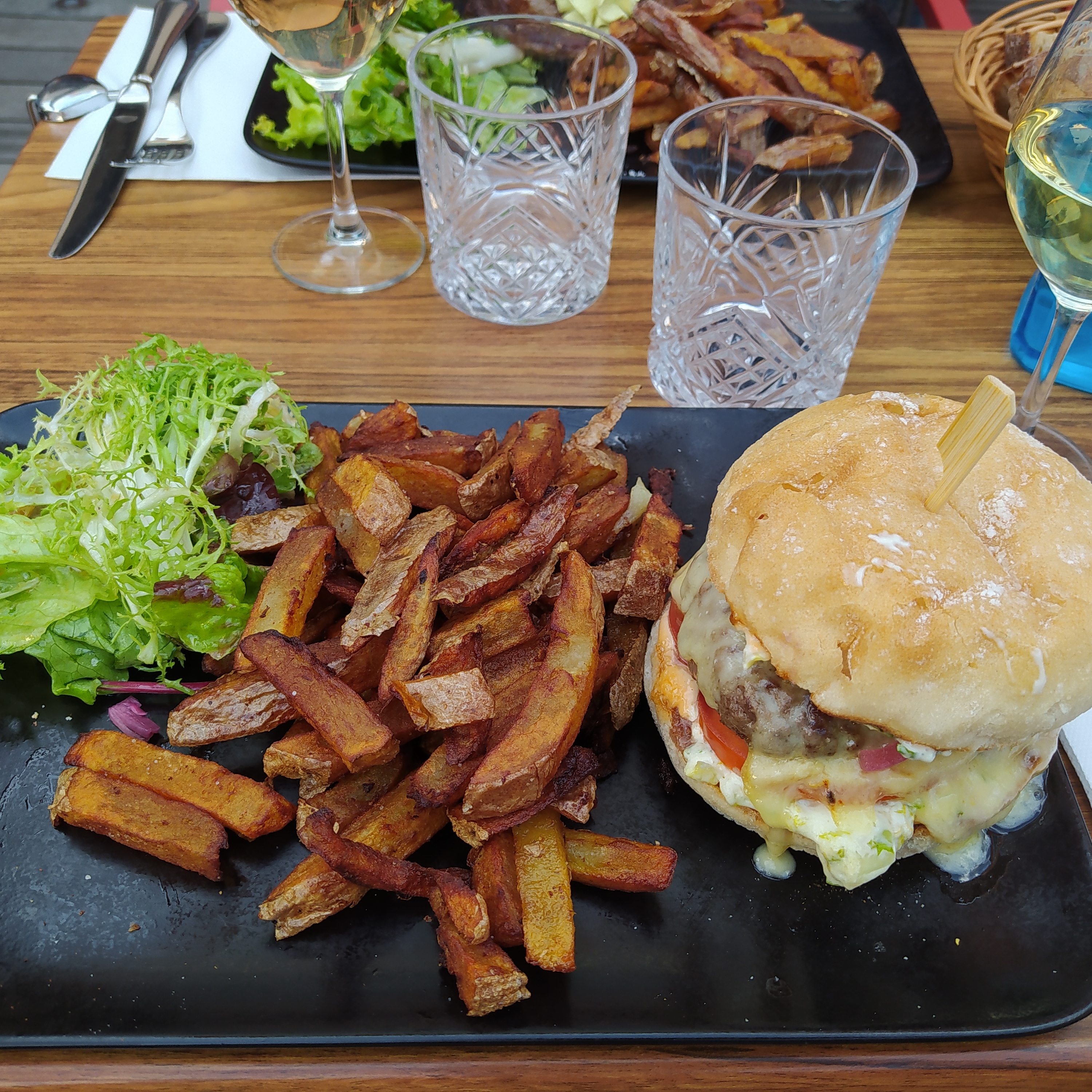 Nourriture horrible, burger cru renvoyé et le nouveau n'était pas beaucoup mieux. Le carré de porc de notre compagnon était encore pire : un bord gras épais et un léchage de purée d'aubergine s'appelle du caviar d'aubergine... non comestible. Le service était très antipathique !