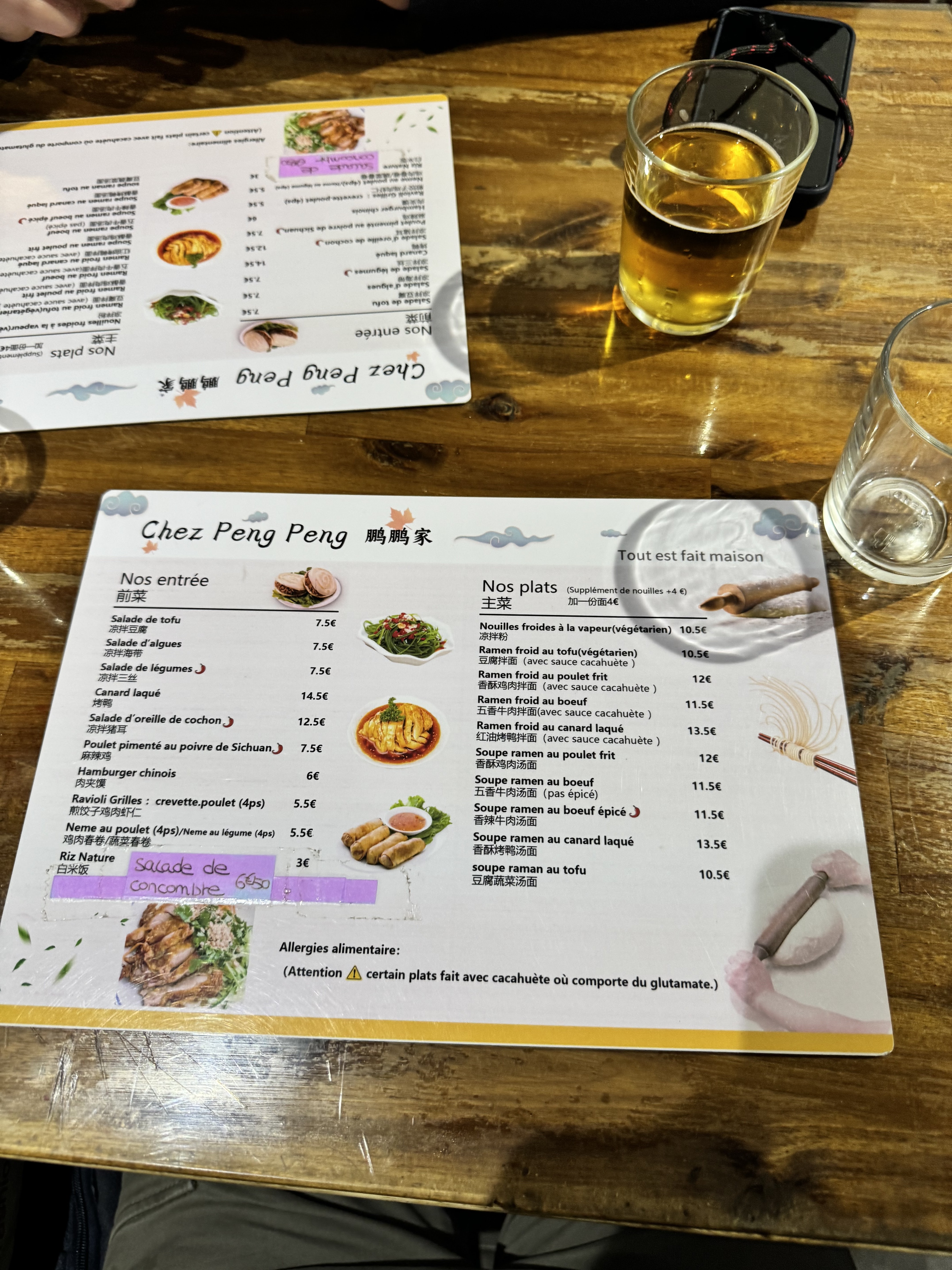 Super dîner chez Peng Peng. Repas savoureux et fait maison