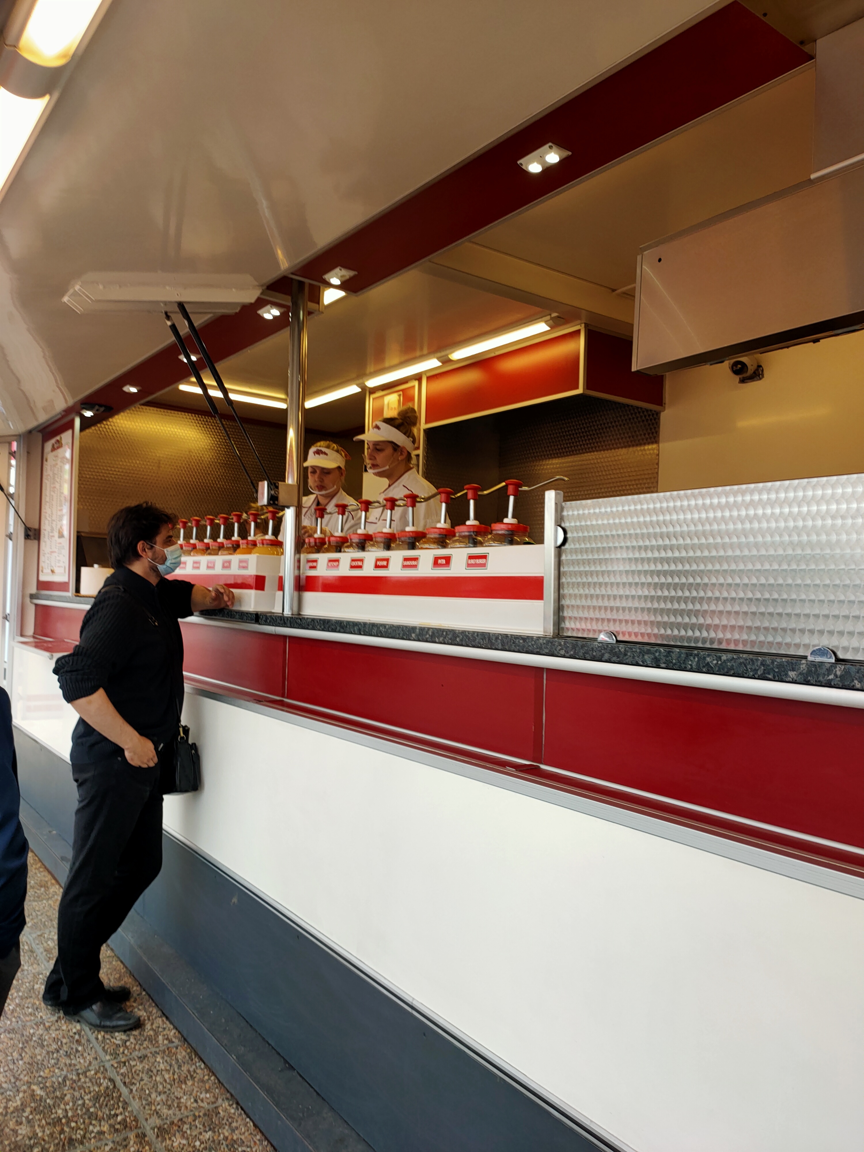 Commande d'une frite sur la route, service express et frite de qualité ! Malheureusement, les sauces sont en supplément.
