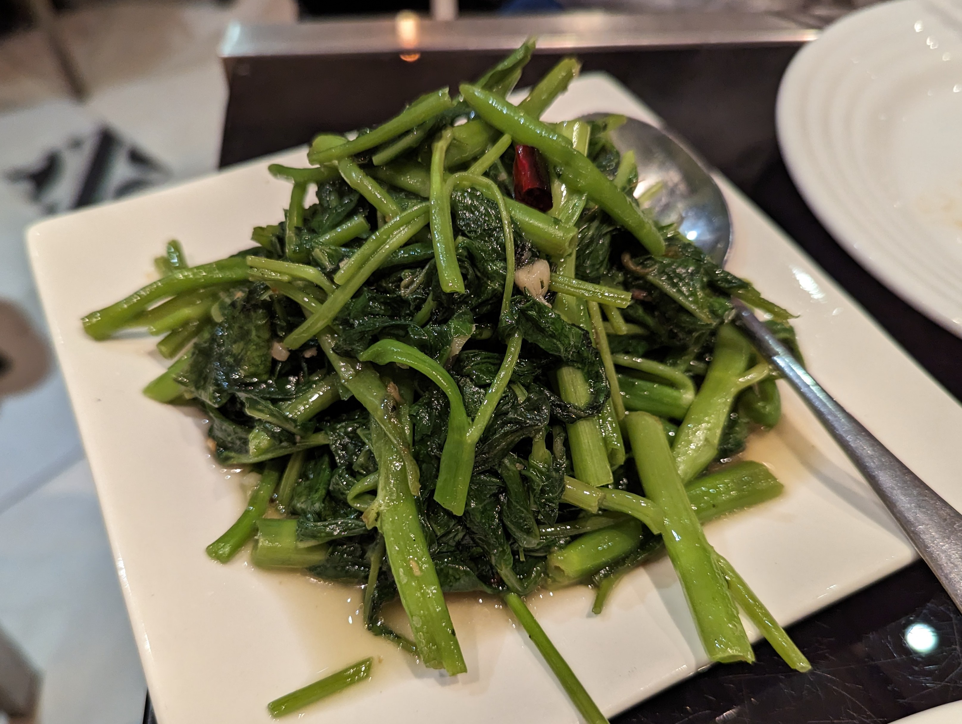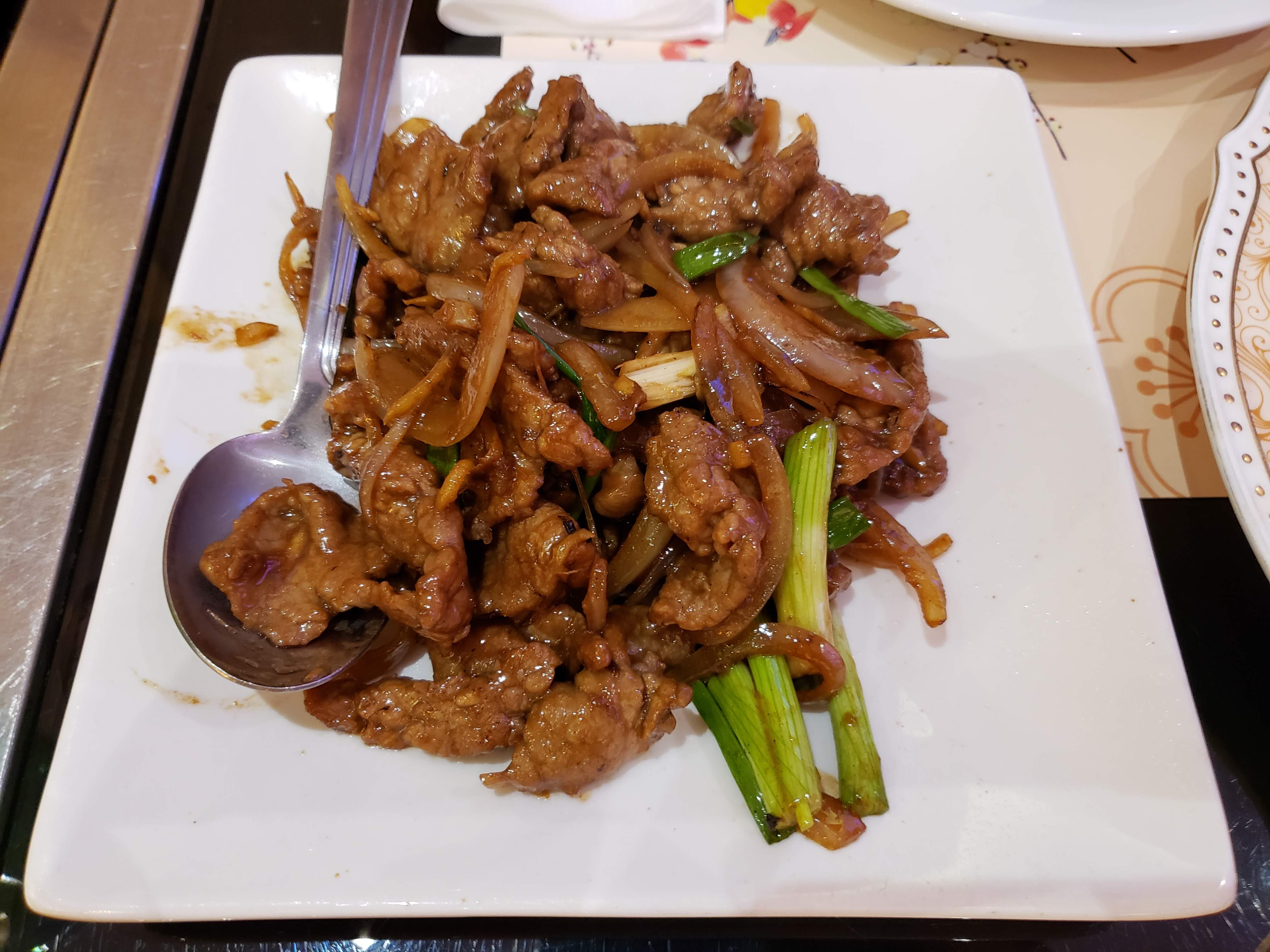 Nous avons commandé une spécialité d’aubergine à la sauge d’huitre qui était succulent et le plat de riz sauté du chef réussi comme je m’attendais d’un bon restaurant chinois et non le riz cantonnais avec les dès de jambon et petit haricots verts. Néanmoins une déception totale pour le plat principal le bœuf a l’huile pimenté. Les tranches était pratiquement bouilli quand je les avais en bouche. Je demande à la serveuse si c’est normal que la viande soit comme de la purée et elle me réponds que oui sachant que la préparation est à base de farine ! Bref j’ai passé mon tour sur ce plat. Regardez la vidéo.
