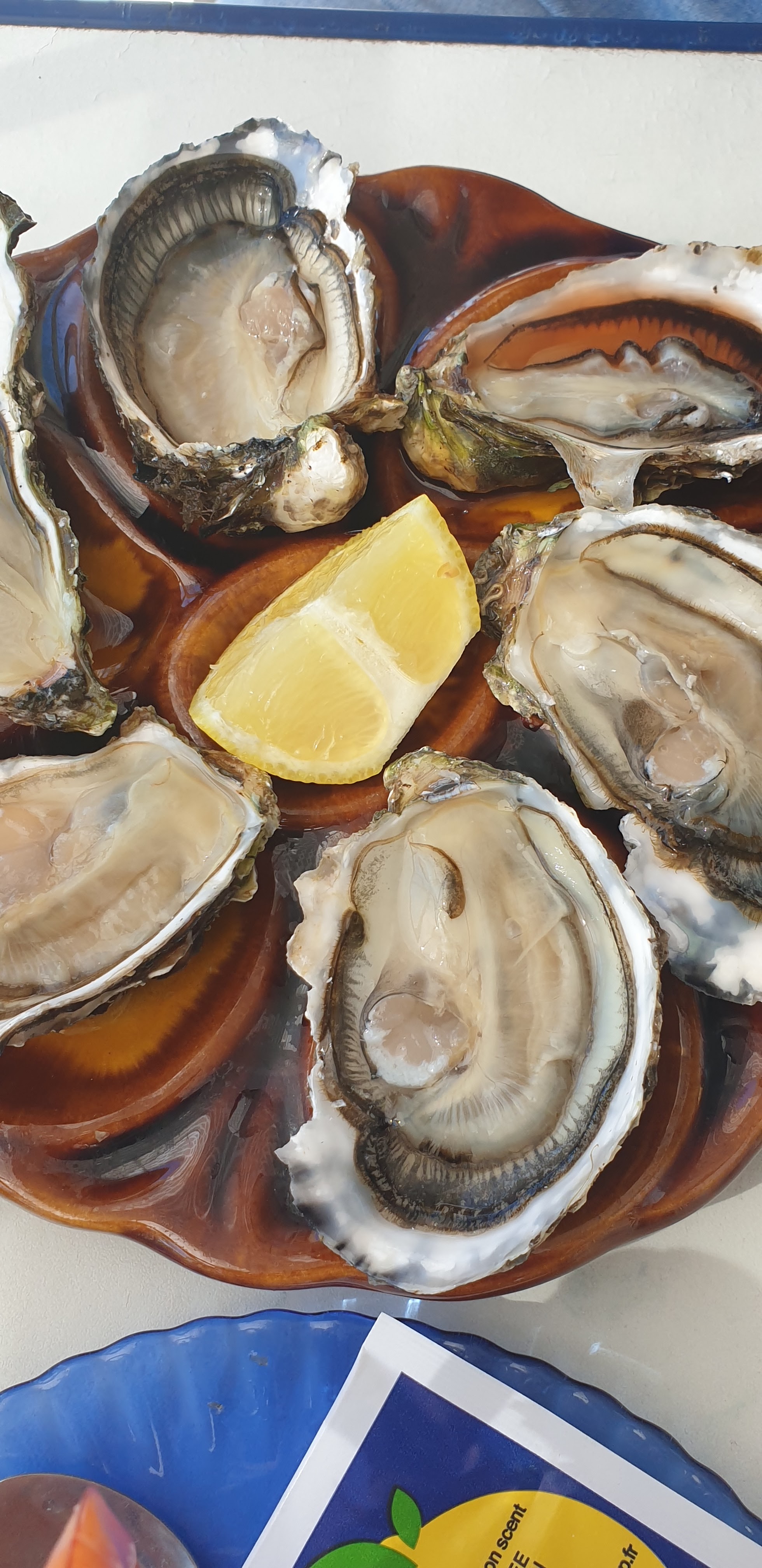 Un arrêt chez pour déguster des huîtres fraîche gratinées crevettes avec des bonnes tartines un bon vin blanc pour finir une boule de sorbet parfumer au basilic et menthe