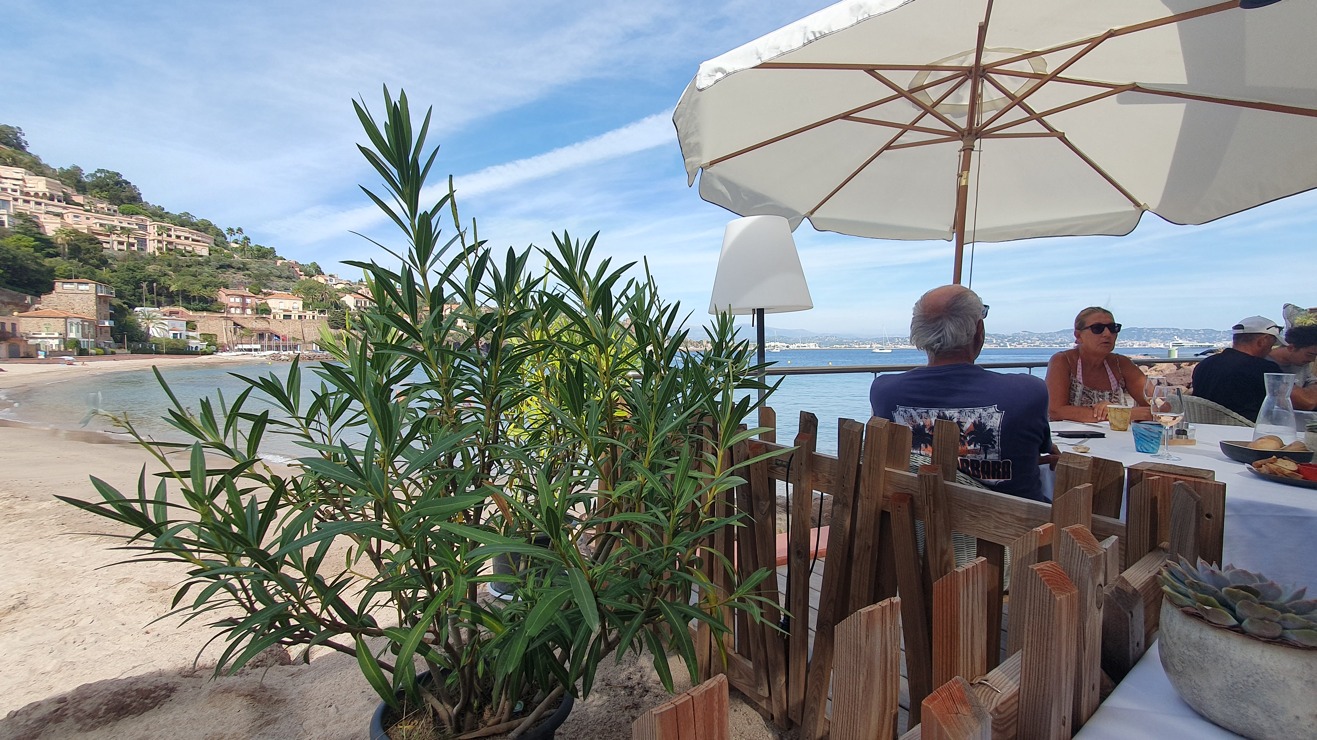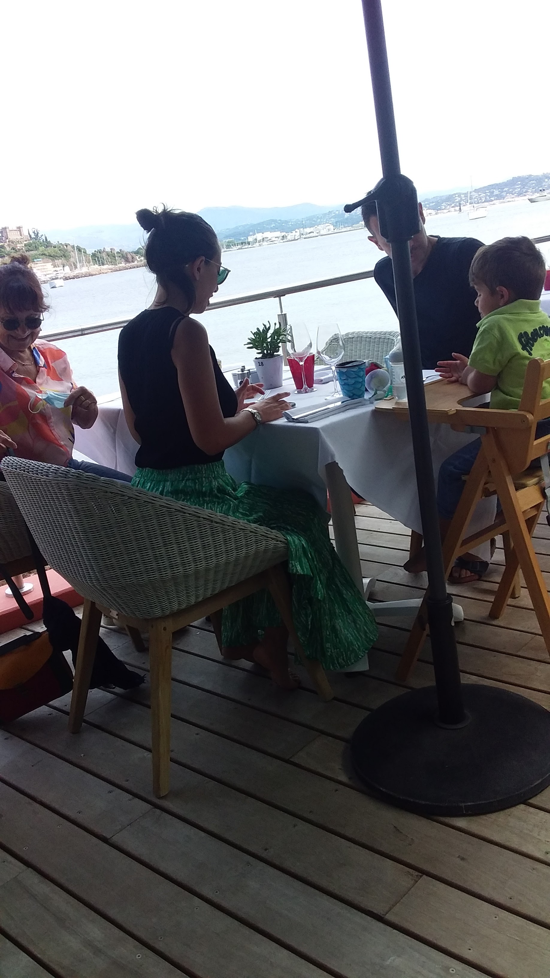 Service pas vraiement top , serveuse 4 x rappelée à l’ordre pour absence de masque(!). Steak demandé bleu arrivé plus que cuit. Cabillaud trop cuit et peau flasque . Dommage car endroit magnifique dans la baie de Théoule.