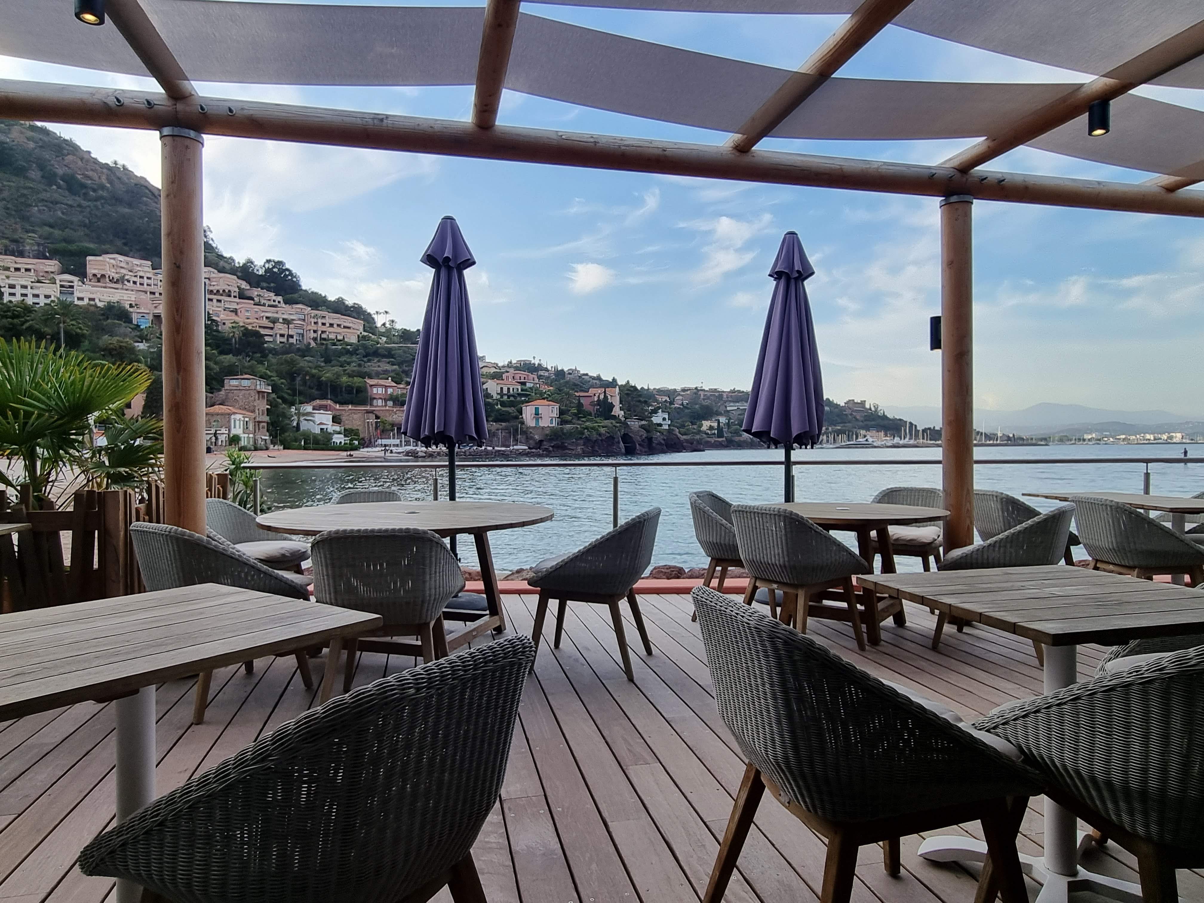 Pas un coup de coeur ce restaurant très bien noté et prisé de Théoule-sur-Mer ! Pourtant tout était là ou presque : Très bel emplacement avec vue sur la Baie de Cannes, décoration tendance et agréable, mets bien cuisinés (à l'exception du filet de boeuf pas très tendre). Par contre, le visuel demanderait à être amélioré, plus soigné (des légères empreintes de doigts sur le gâteau chocolat-framboise). Mais surtout, il nous a manqué la convivialité, un personnel souriant, accueillant et avenant. L'accueil tout simplement qui n'a pas été à la hauteur de la réputation de cet établissement. A mon sens, un service impersonnel, mécanique n'a jamais permis de faire revenir les clients locaux que nous sommes d'autant que les prix sont dans la fourchette haute.