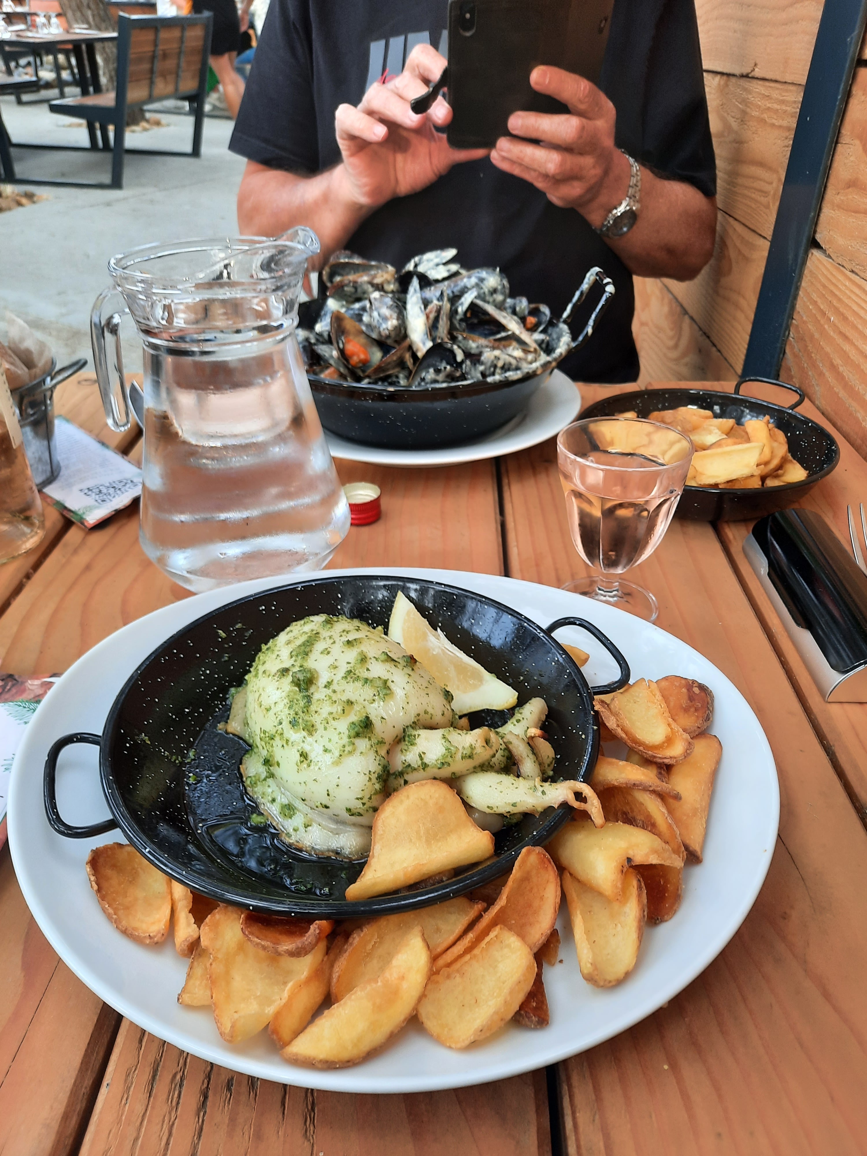 Superbe restaurant. Nous avons attendu une heure, le staff est venu nous offrir bière, pastis ou eau au choix. Les plats étaient succulents et copieux. Les serveurs courent dans tous les sens. Le prix est « bas » pour cette qualité. L’ambiance est sympa. Pour les enfants, il y a des vrais aire de jeux. Je vous recommande le rosé « domaine d’angel », les moules et le saumon.