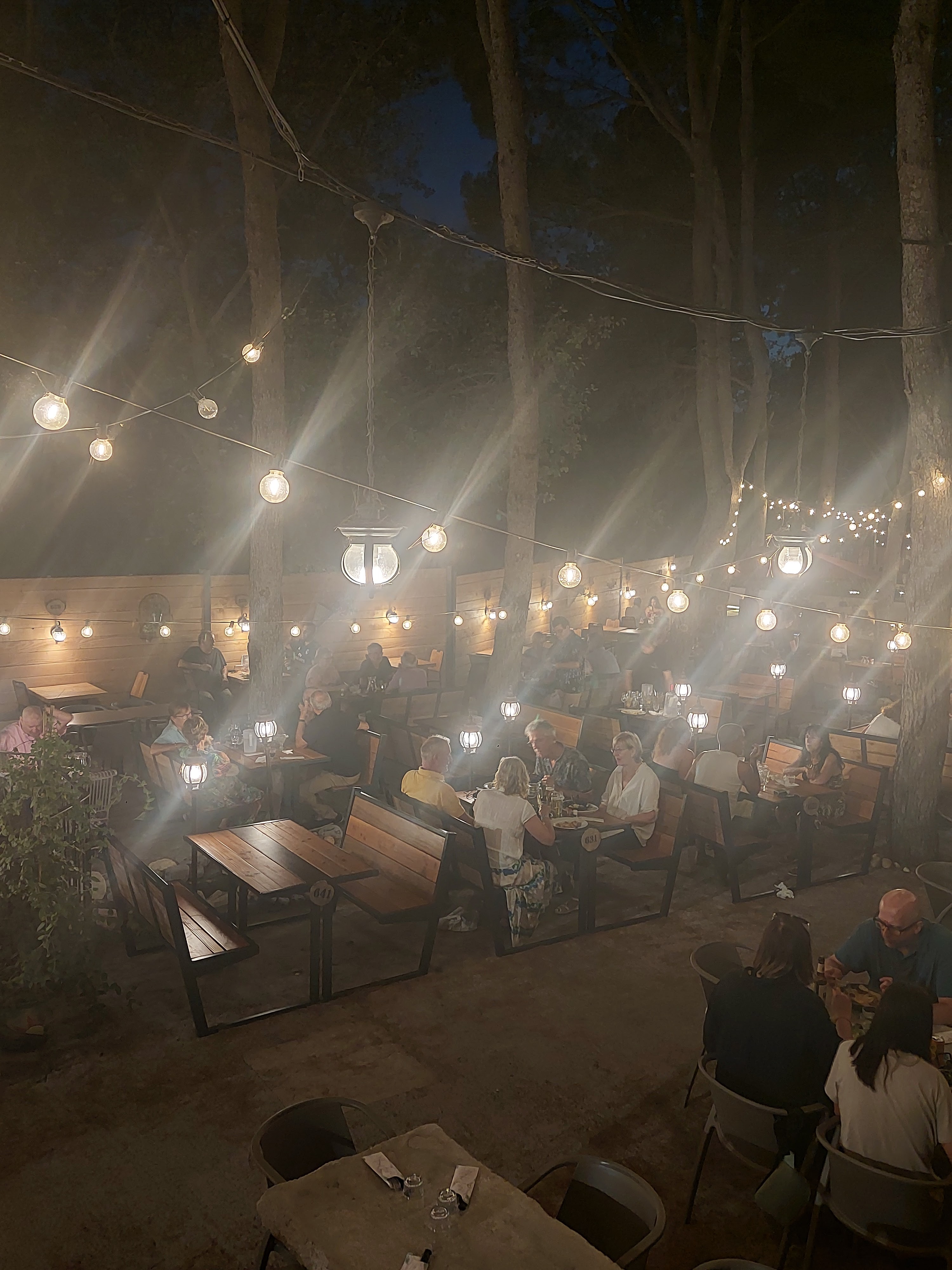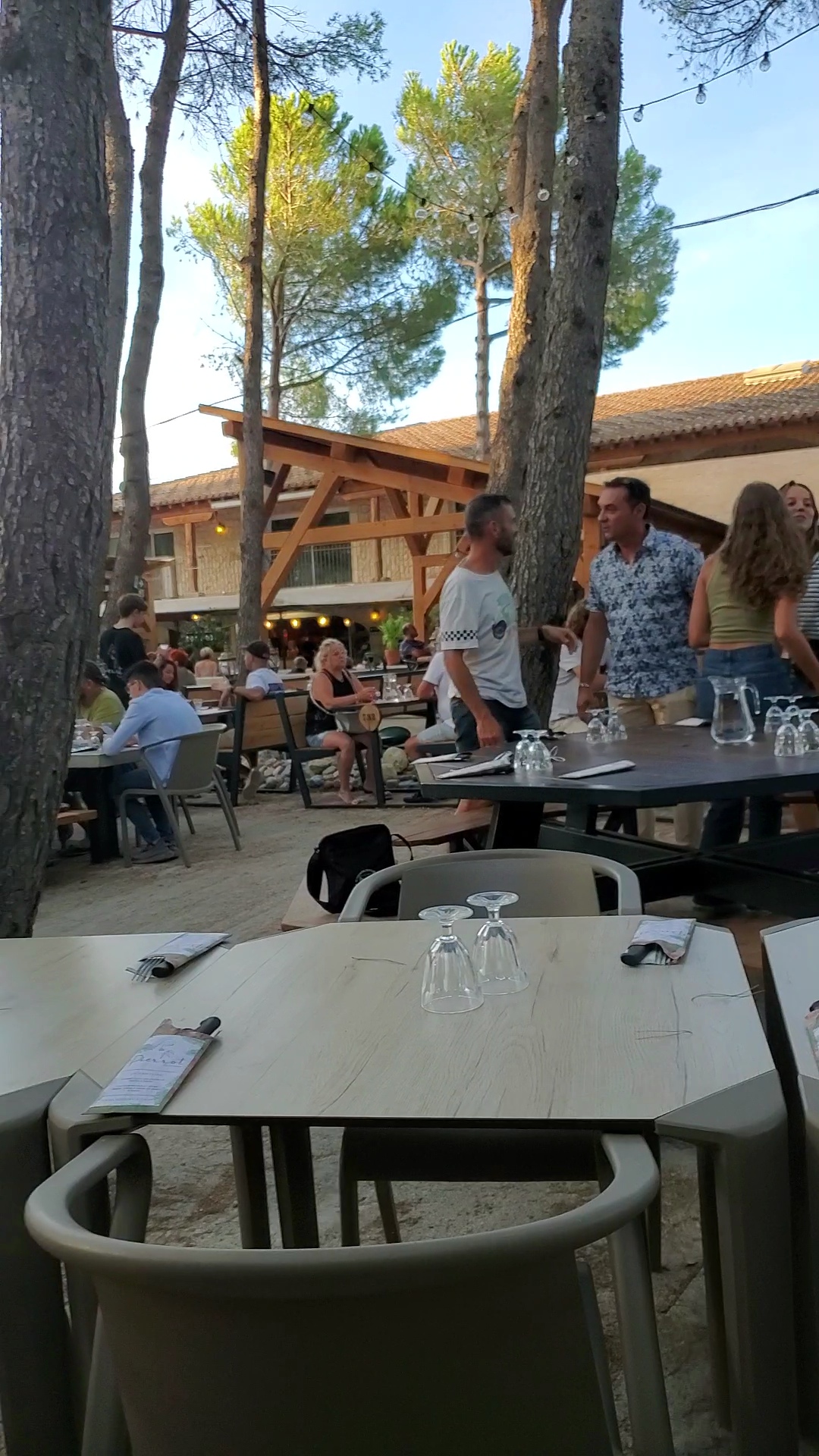 Bonjour, Nous avons passé un très bon moment dans ce restaurant. Il est préférable d'y arriver tôt (19h) car il y a énormément de monde. Les enfants y ont passé un très bon moment et se sont bien amusés. Le cadre est magnifique je trouve, l ambiance sous les pins est très agréable.
