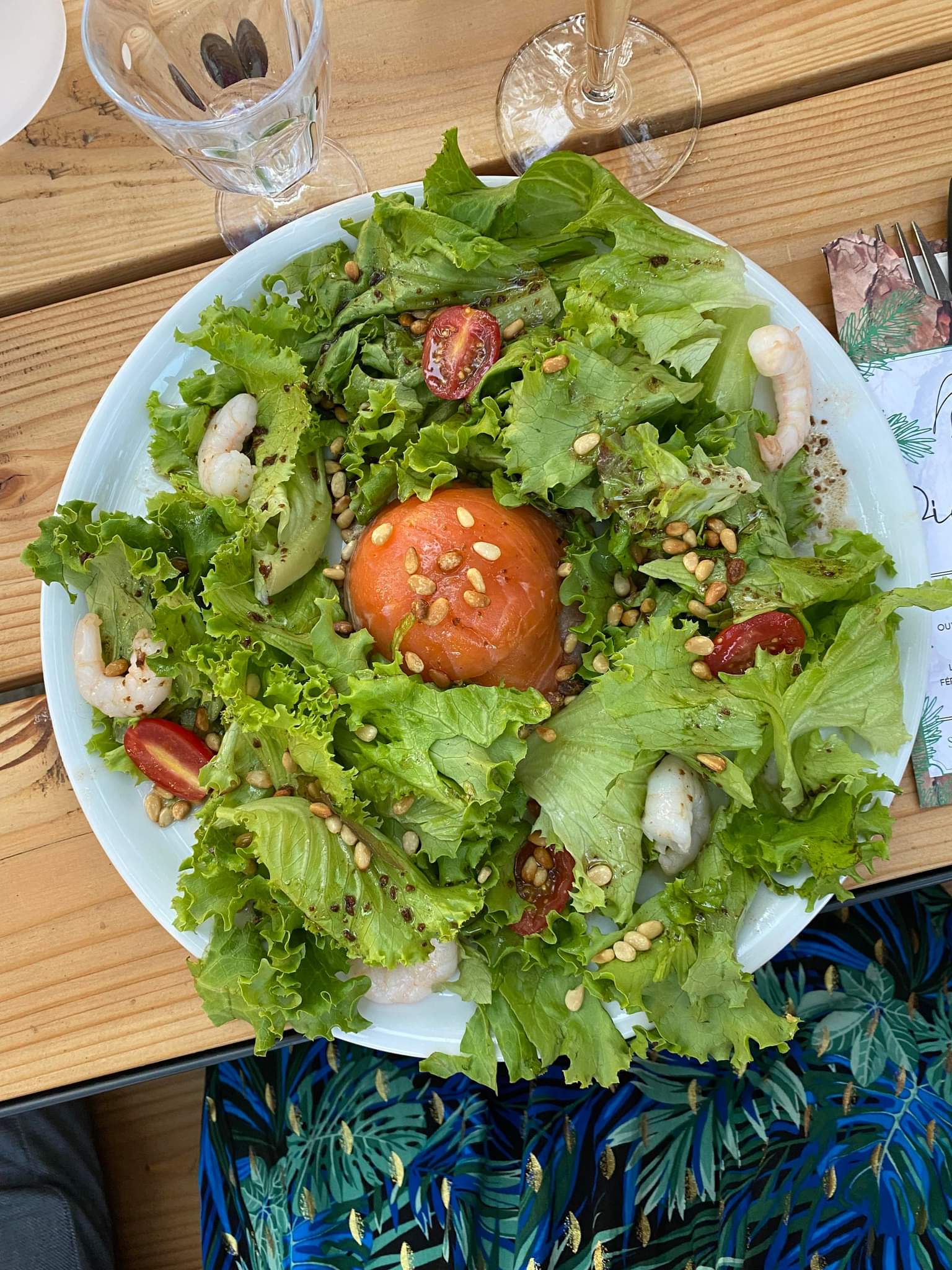 Endroit parfait pour les enfants ! La nourriture n’était globalement pas excellente mais ma salade était bonne Le cadre est très sympa sous les pins avec le chant des cigales !
