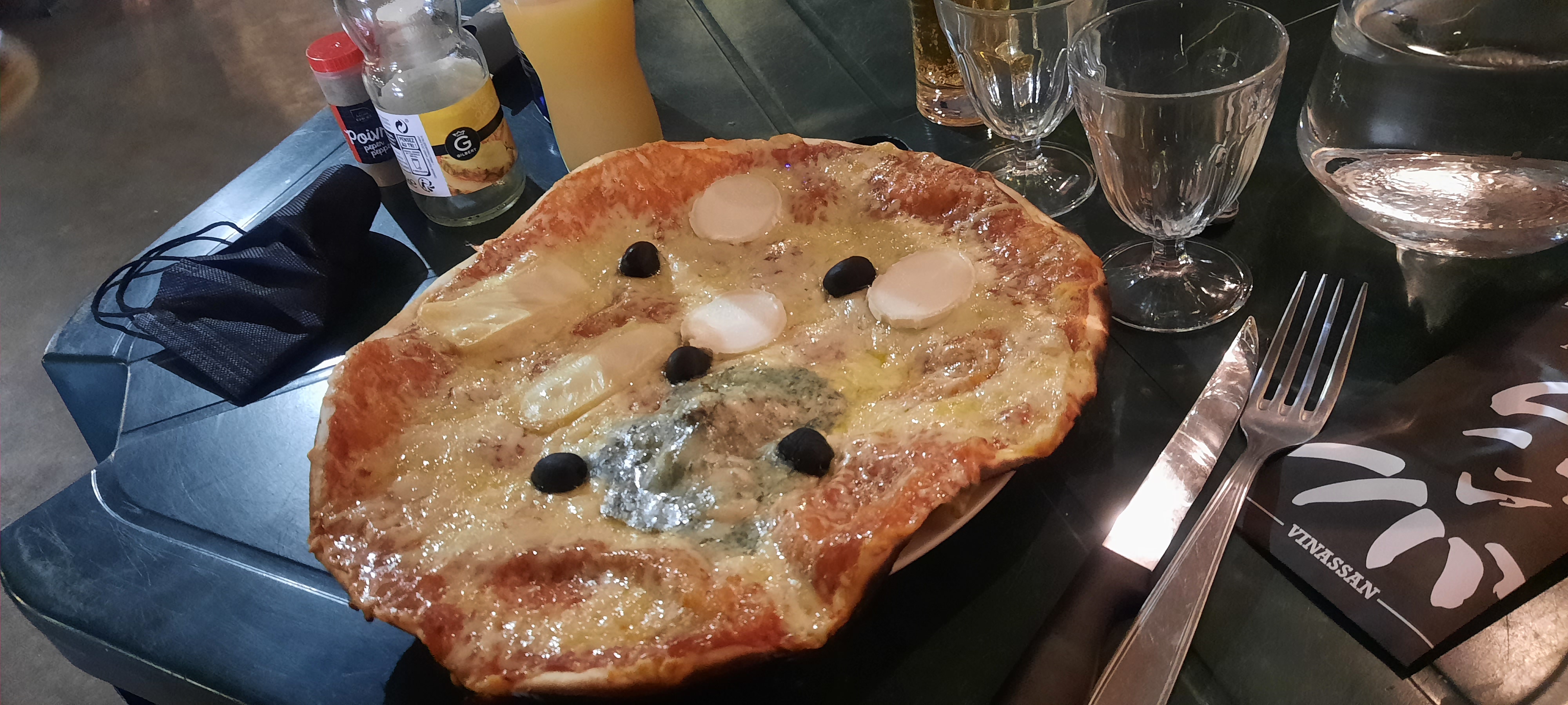 Cadre exceptionnel , service rapide et sympa , jeux pour les enfants , ambiance festive :ce restaurant était réputé depuis des années sur le Narbonnais. Nous avons hélas constaté une baisse de qualité en particulier sur les pizzas comme cette pizza napolitaine aux anchois sans anchois! Vite, redevenez le restaurant que nous aimions avec des plats de qualité!