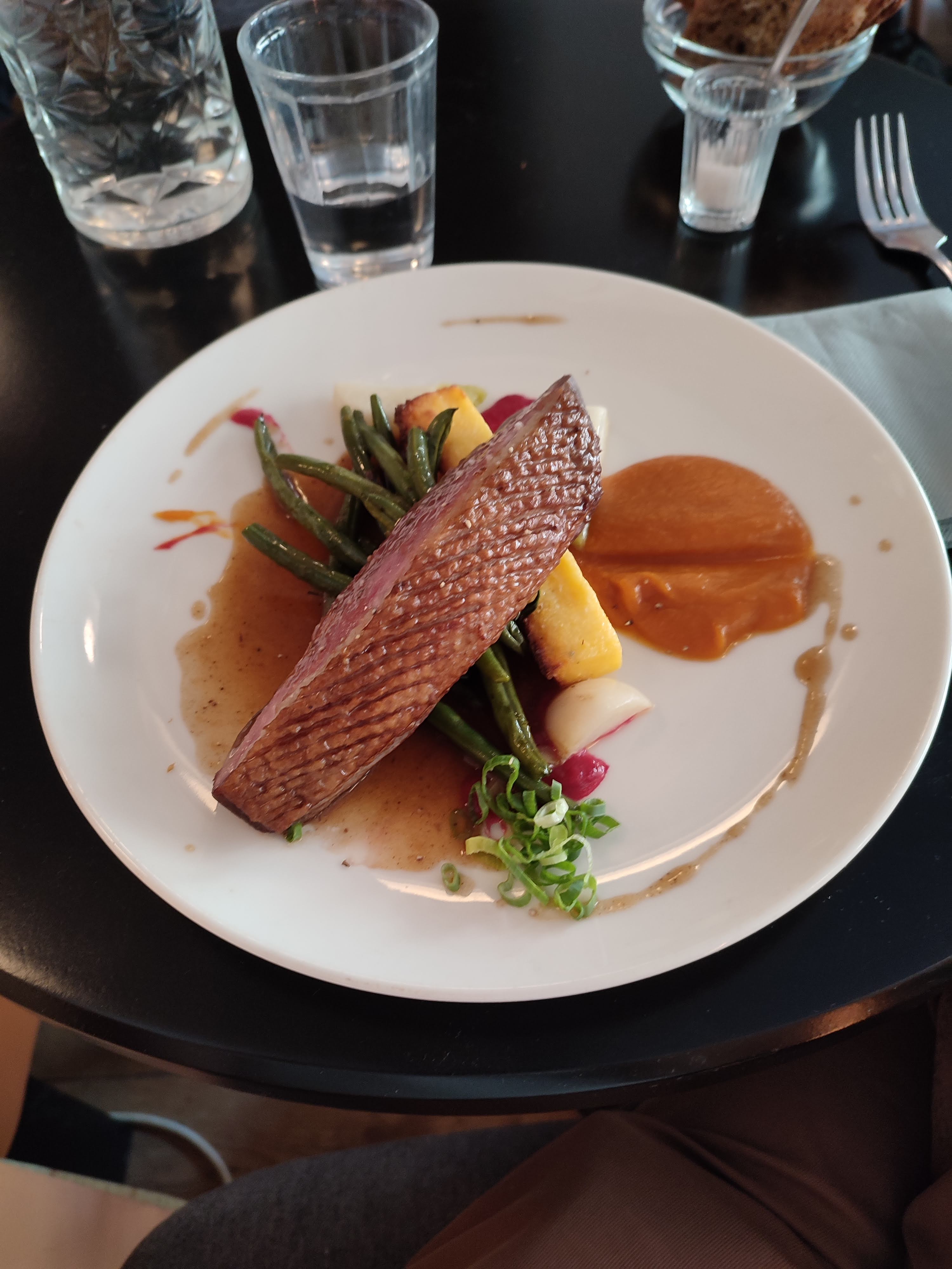 Restaurant situé au calme dans un quartier sympa. Habituellement on prend qu’un plat et un dessert mais là on a été tenté par l’entrée aussi. On s’est régalé ! Les plats étaient bien présentés Le service était top !