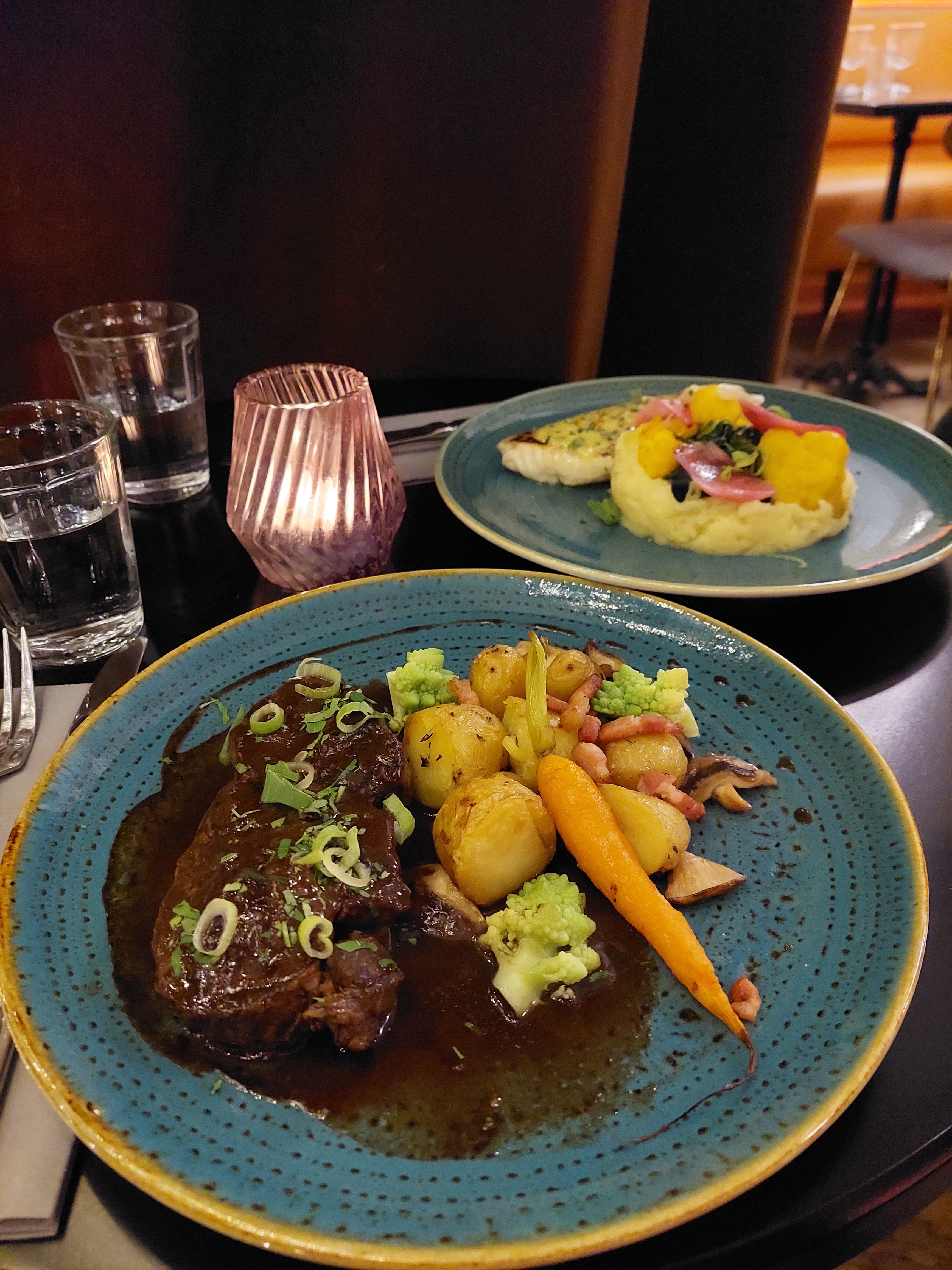 La nourriture était bonne, mais pas très savoureuse. Très créatif et confortable comme look, mais rien de spécial. Nous avons essayé 2 vins différents, un verre chacun, pas mal mais pas génial non plus. Je trouve le prix élevé pour ce que c'est.