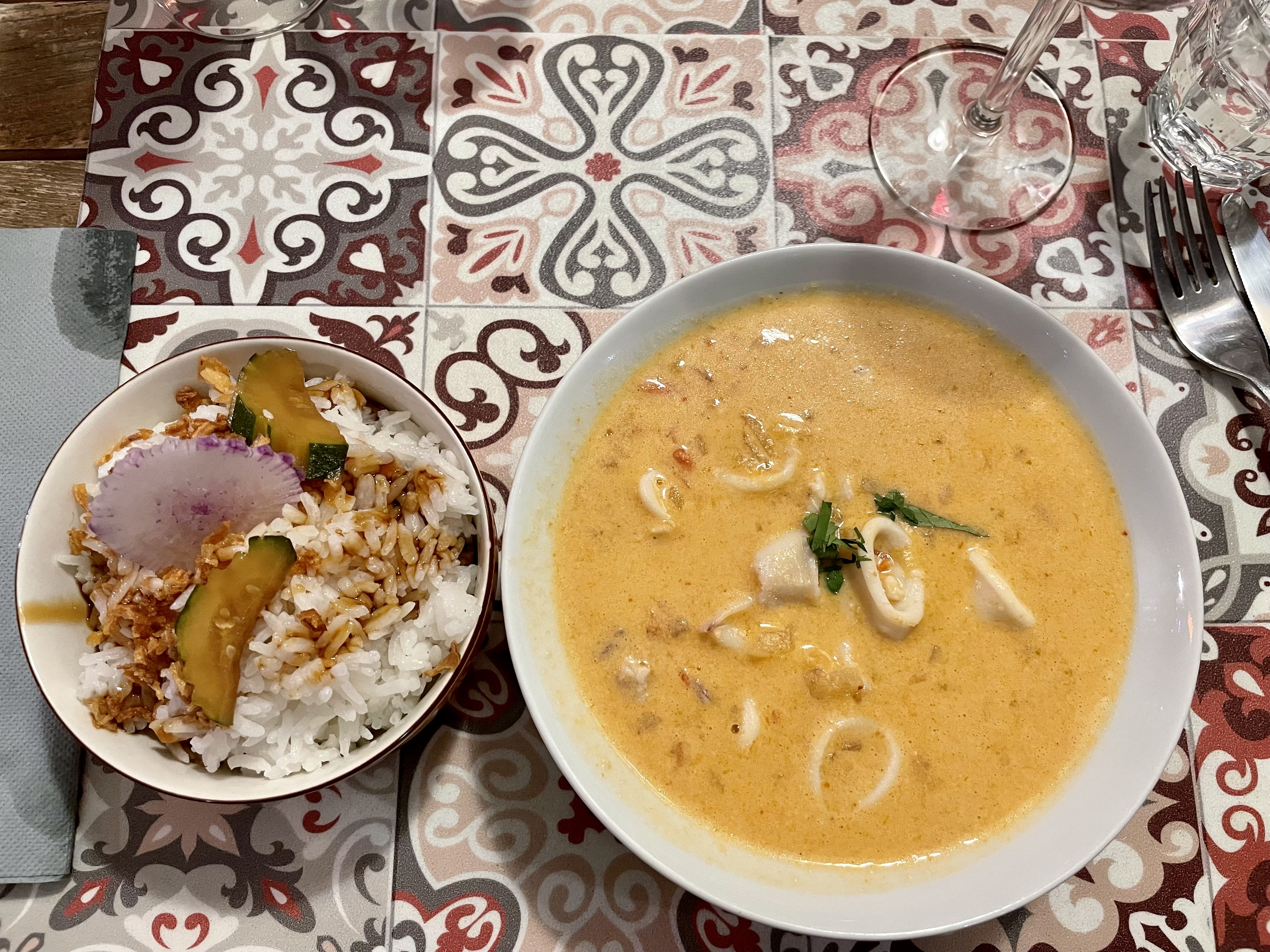 Alors là !!!! Quelle Belle surprise... Tout y est parfait. Une carte courte et déjà on hésite entre le tataki de magret de canard ou un poulet gingembre.... Le curry rouge et ses calamars ont été mon choix définitif.. excellent vraiment excellent ❤️