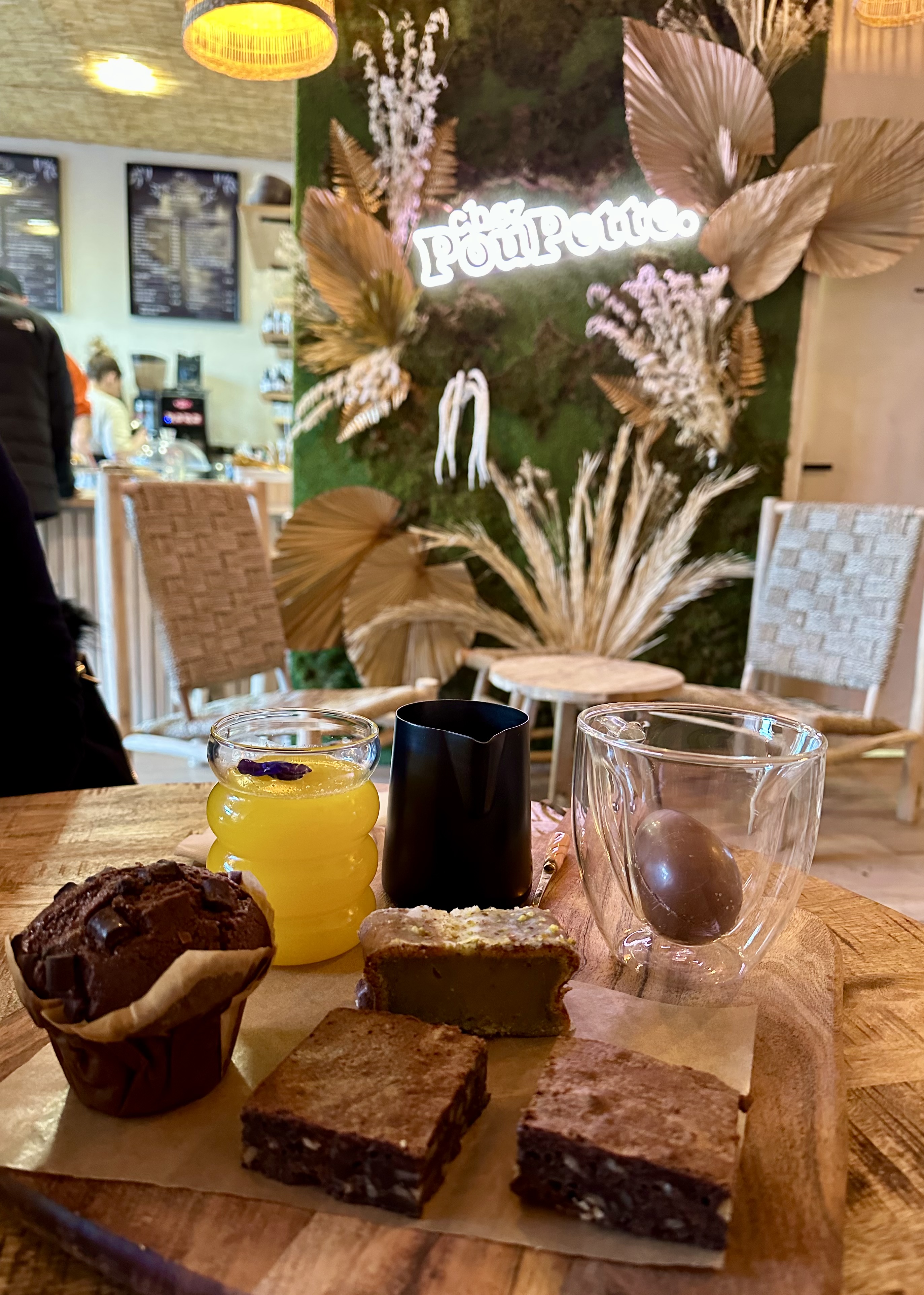 Hyper sympa, hyper bon et très abordable! Une vraie pause dans la grisaille!!! Latte chai banane tellement bon et leur quiche!!!! Tout est super bon!🌿👍