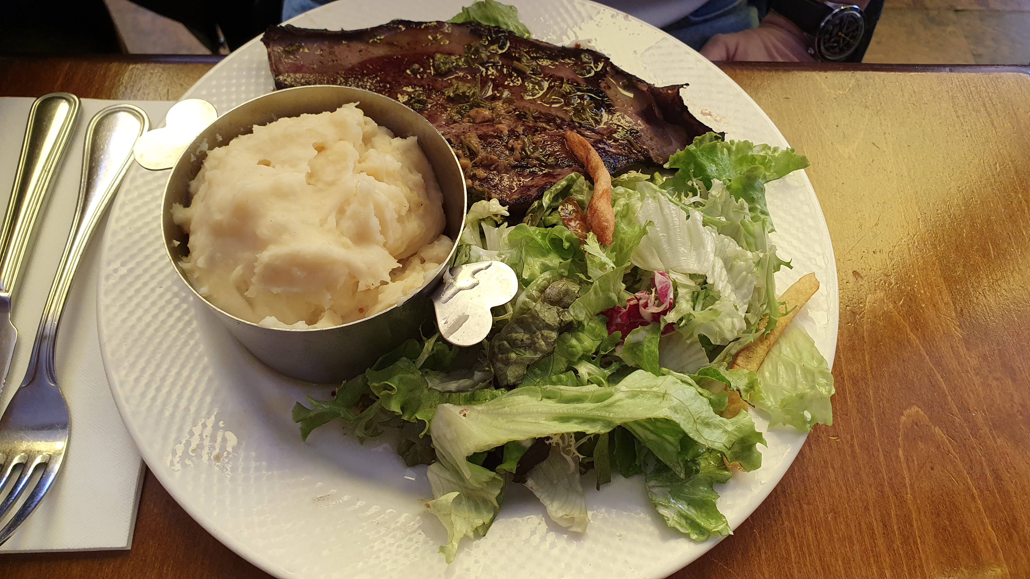 Restaurant sympathique façon gastronomique bistrot. J'ai commandé un pavé de salers avec une purée maison, mon ami un tartare de bœuf. La purée maison est bonne la viande tendre, le tartare de bœuf bien assaisonné. Les plats sont consistants, Le tiramitsu Nutella délicieux. Le personnel est sympathique, chaleureux, réactif . Le service rapide pourtant c'était full. Une terrasse bien chauffée est mise à disposition. Bon rapport qualité prix Je recommande. 👍