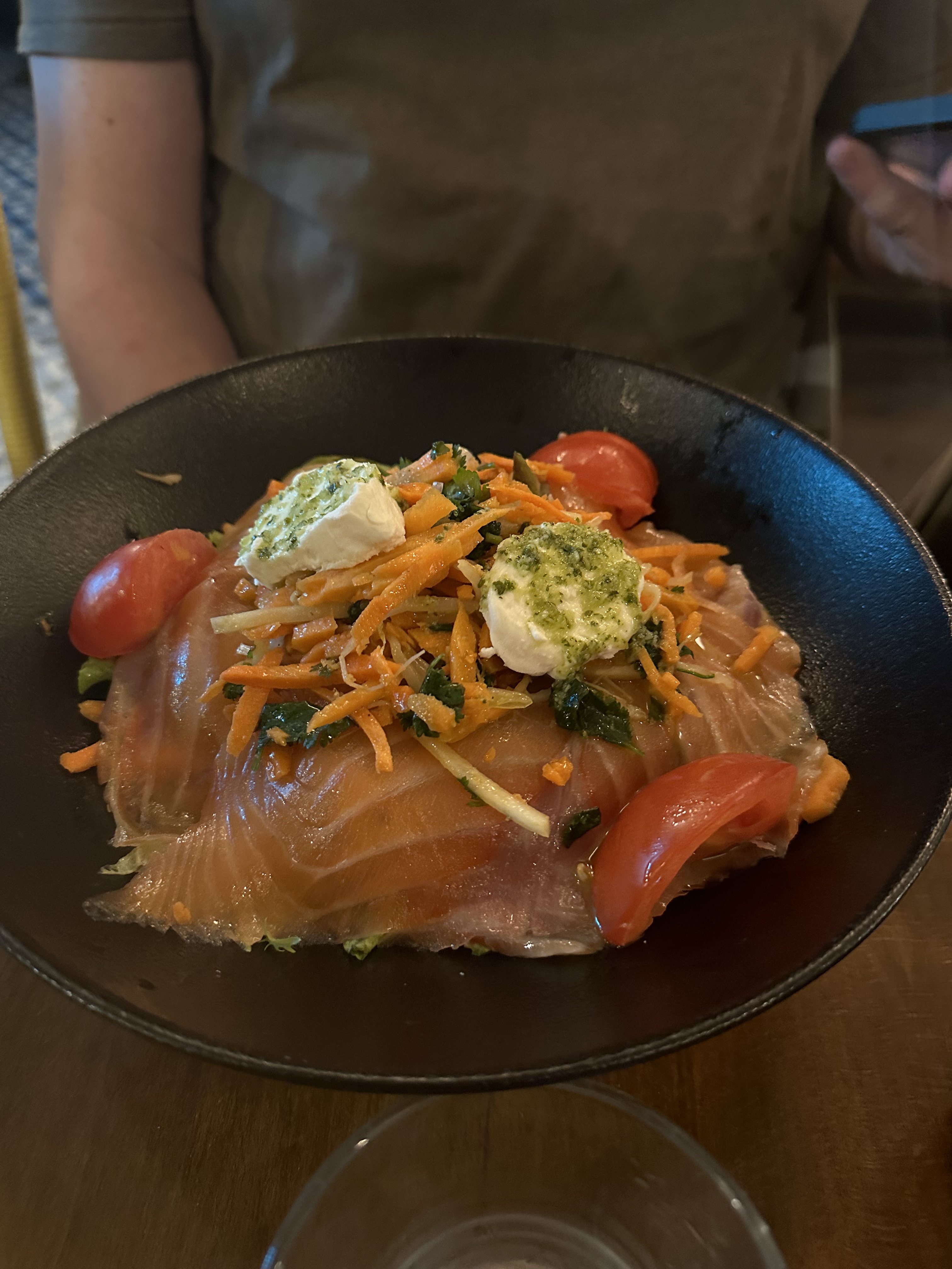 Déçu par le poke bowl. La quantité était là, le saumon était frais mais pas assez d assaisonnement sur les crudités (chou rouge et carottes, durs). Tout était fade. Terrasse agréable