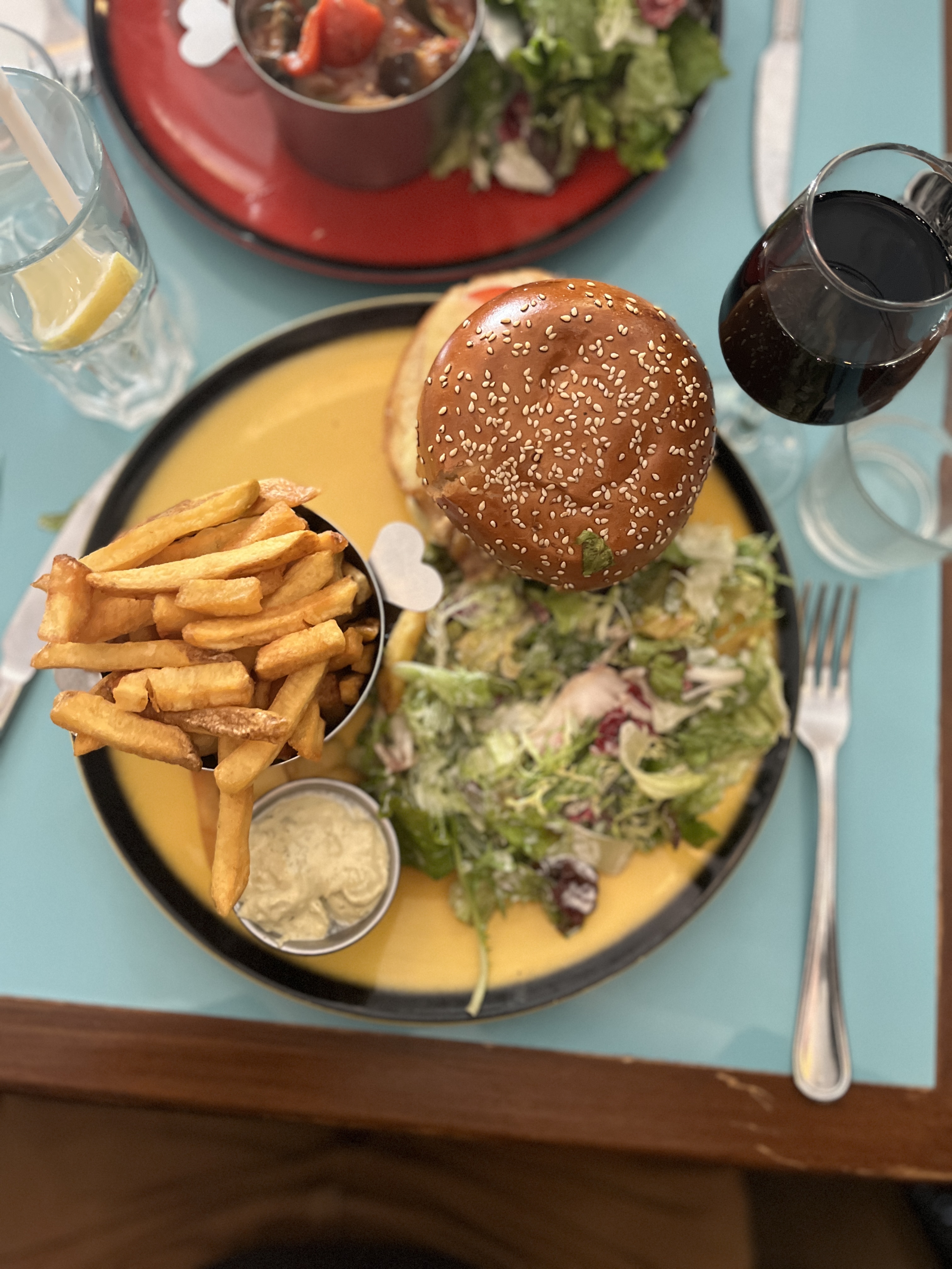 Brasserie française à 100% J'ai adoré le burger végétarien (accompagné de frites délicieuses et d'une sauce tartare à tomber en plus d'une salade parfaitement assaisonnée) Mon compagnon n'est pas français et c'était la première fois qu'il testait le bœuf bourguignon, carton plein ! En dessert, une île flottante généreuse dont la part de sucre est dosée à souhait 👌 Le service est impeccable et tous les serveurs sont très gentils. Merci à vous d'avoir agrémenté notre découverte de Paris d'une telle ambiance !