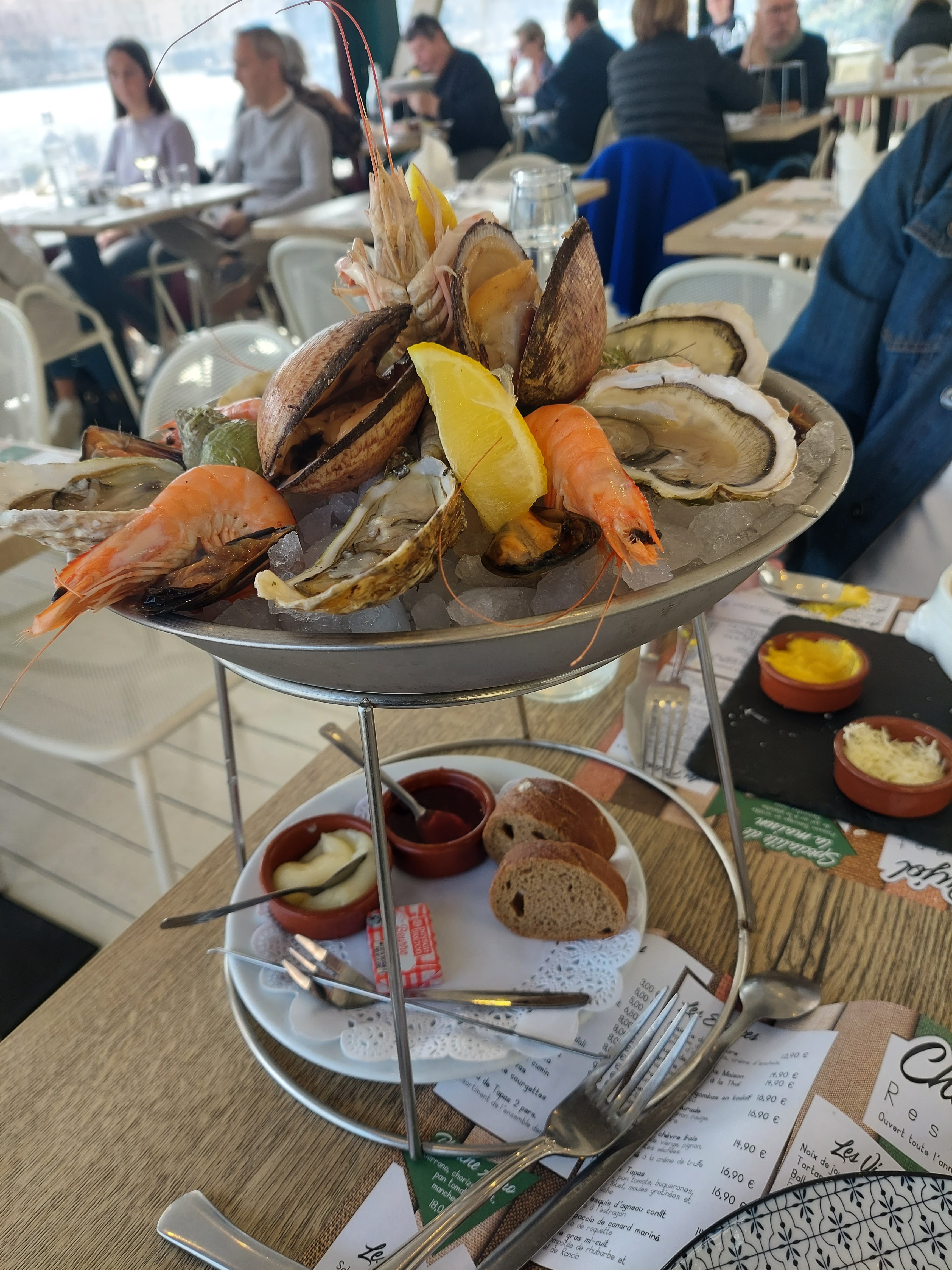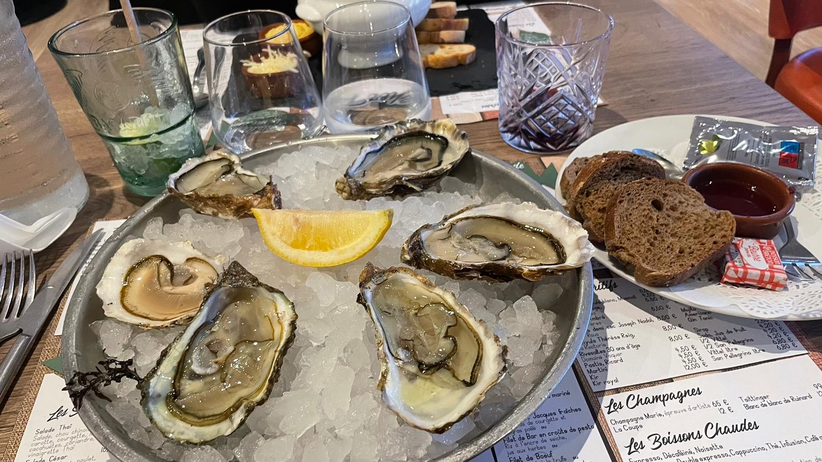 Plateau de fruits de mer composé par nous à la carte excellent! Vin servi frais et délicieux Prix raisonnable et service par une petite serveuse très sympathique et attentionnée Je recommande Notre visite était le dimanche 20 février Réservation recommandée je pense