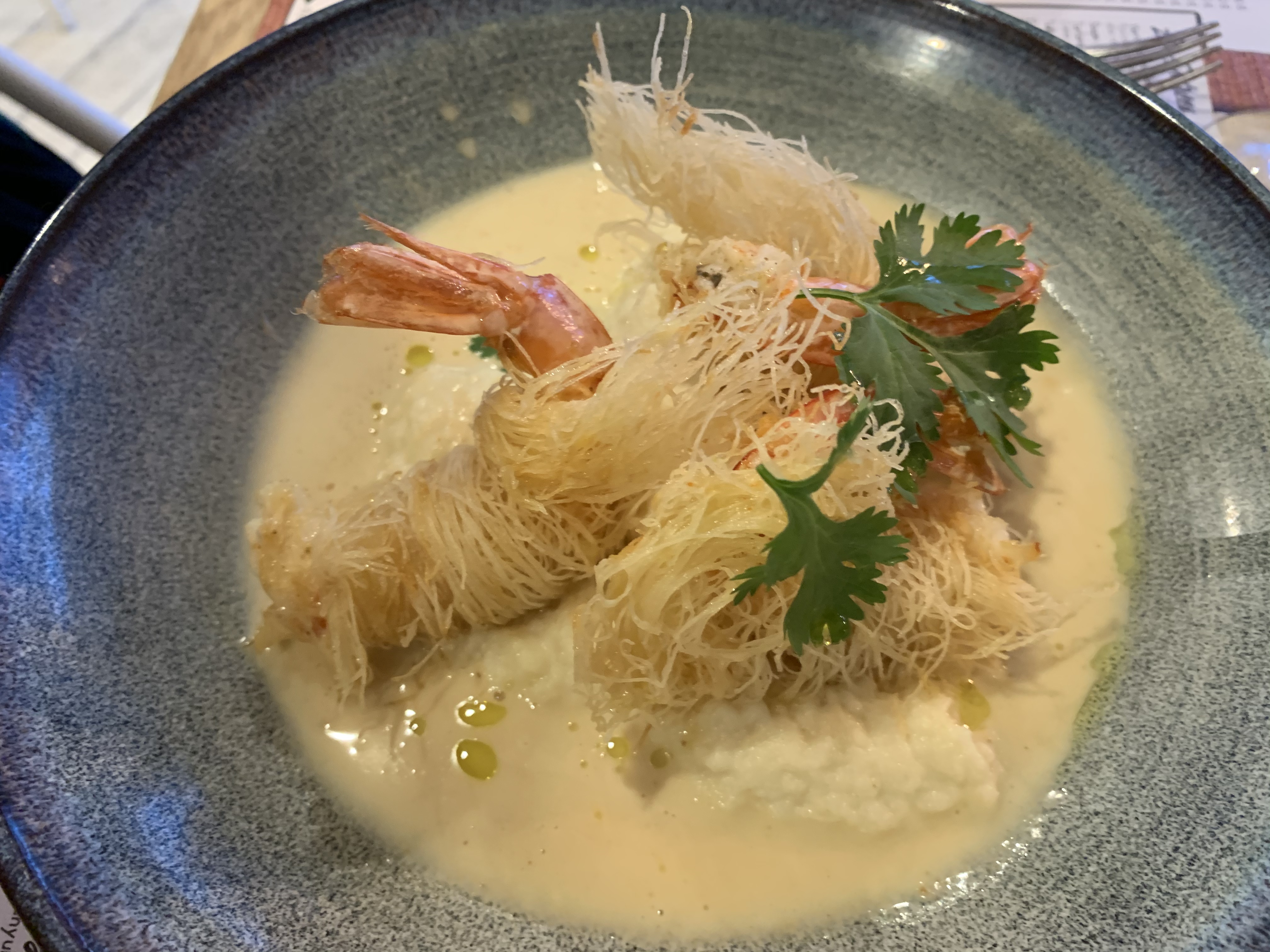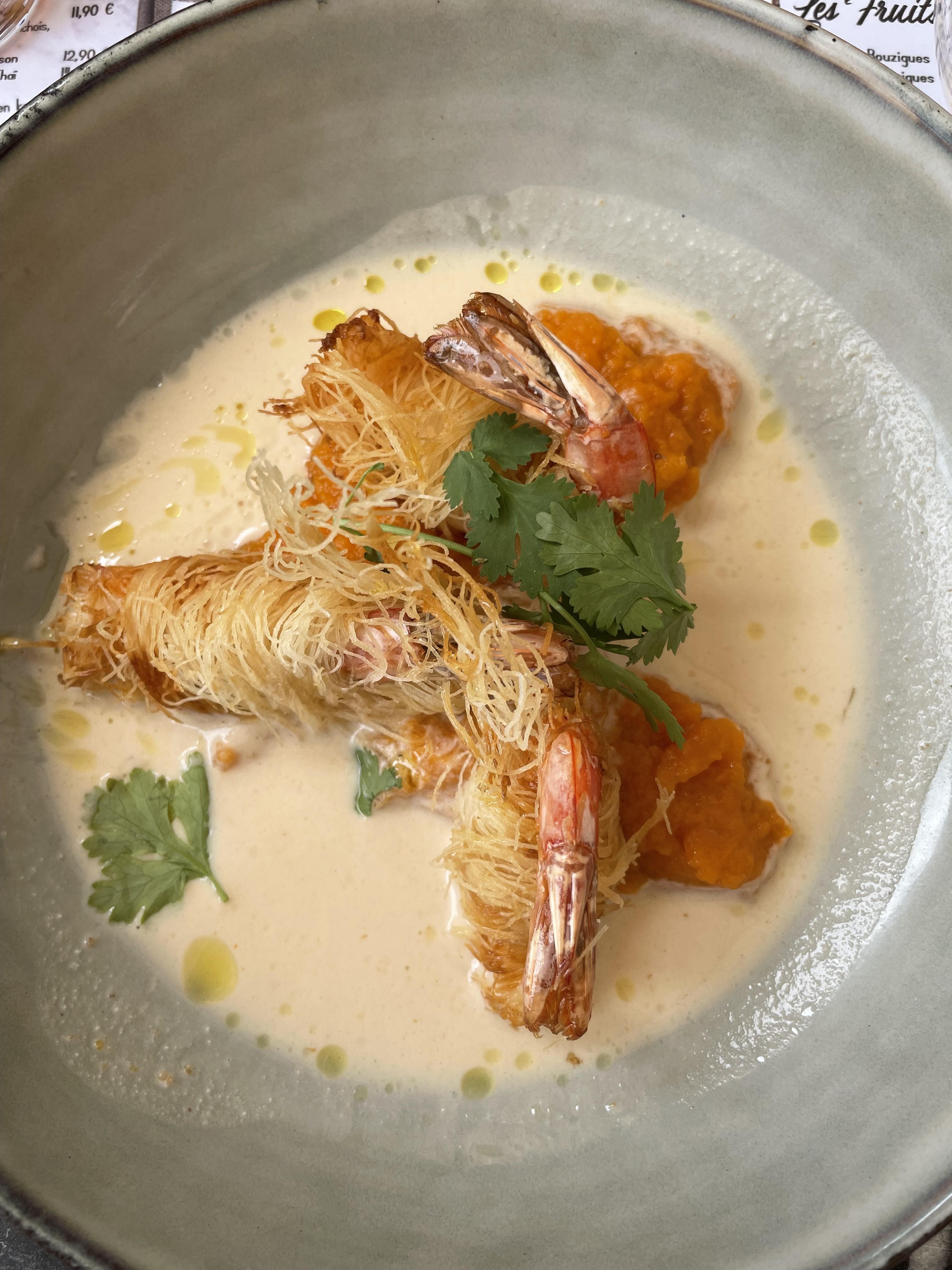 Restaurant infecte crevette avec un goût de moisi amande trop cuite boulot identique gros dommage c'est pas digne désolé pour ce commentaire mais vraiment c'est horrible