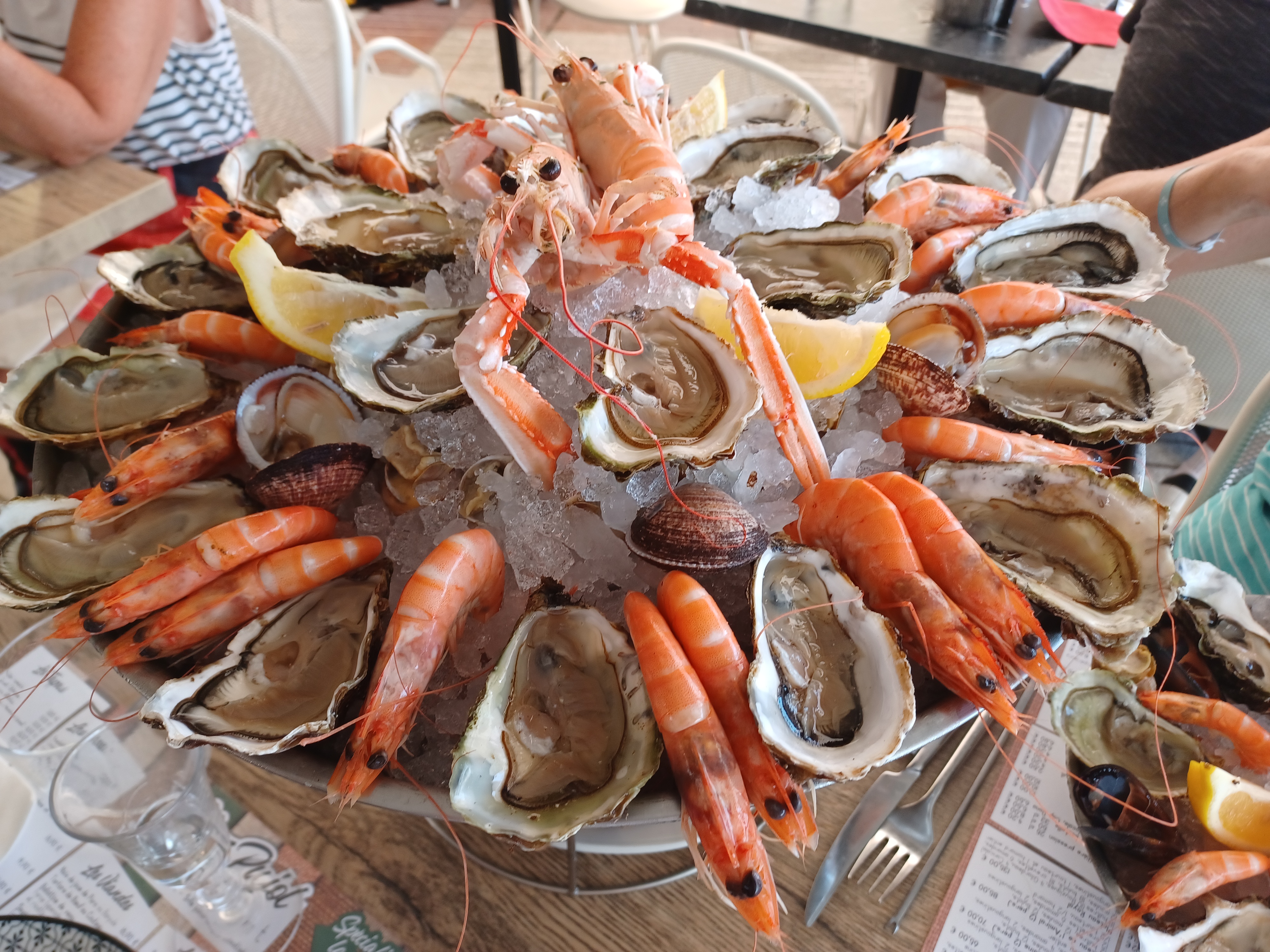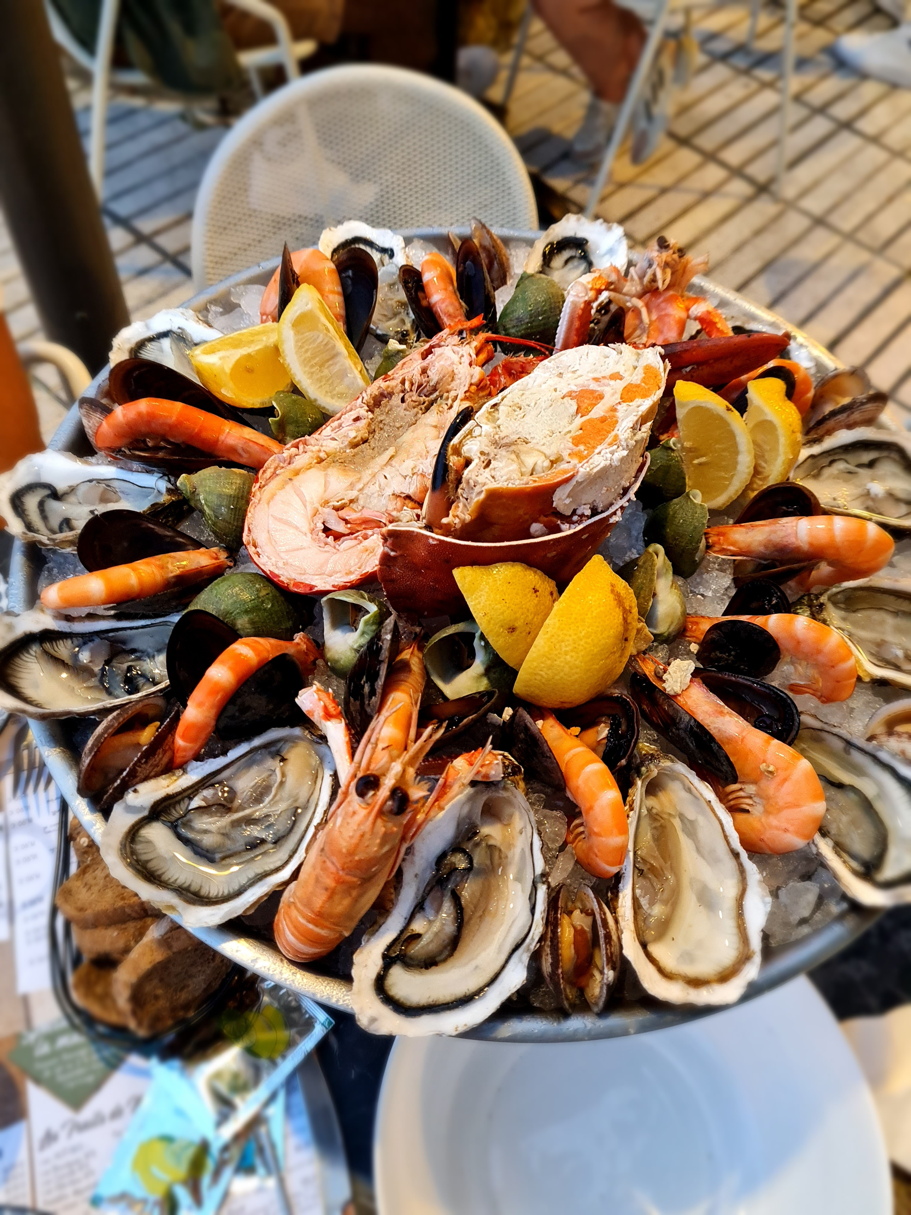 Nous cherchions un bon plateau de fruits de mer nous avons été servis! Nous avons pris le plateau pour 2 lamiral à 88 euros, ils étaient mérité. Les produits étaient frais et le plateau bien garni et bien préparé. Nous l'avons dégusté en deux heures et n'avions plus de place pour le dessert ! Le cadre était sympathique puisque le restaurant donne sur le port! Enfin le serveur avait une bonne humeur contagieuse et un rire communicatif, l'équipe était au petit soin pour les clients ! Nous recommandons !