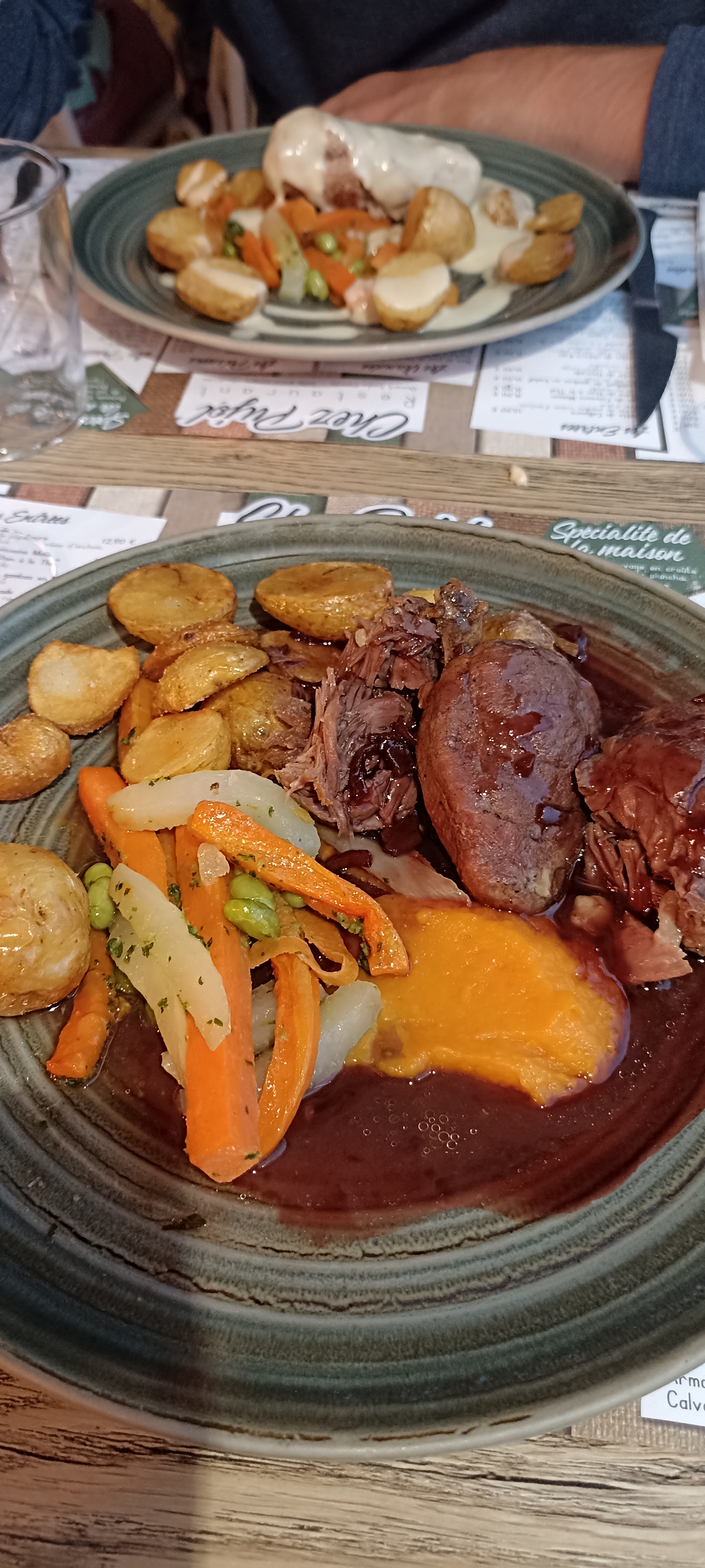 2 repas du soir d'une cuisine raffinée et délicieuse malgré le nombre de 31 que nous étions les 2 soirs. Du personnel, un timing à la hauteur ! Bravo on vous recommande et produits du crû.