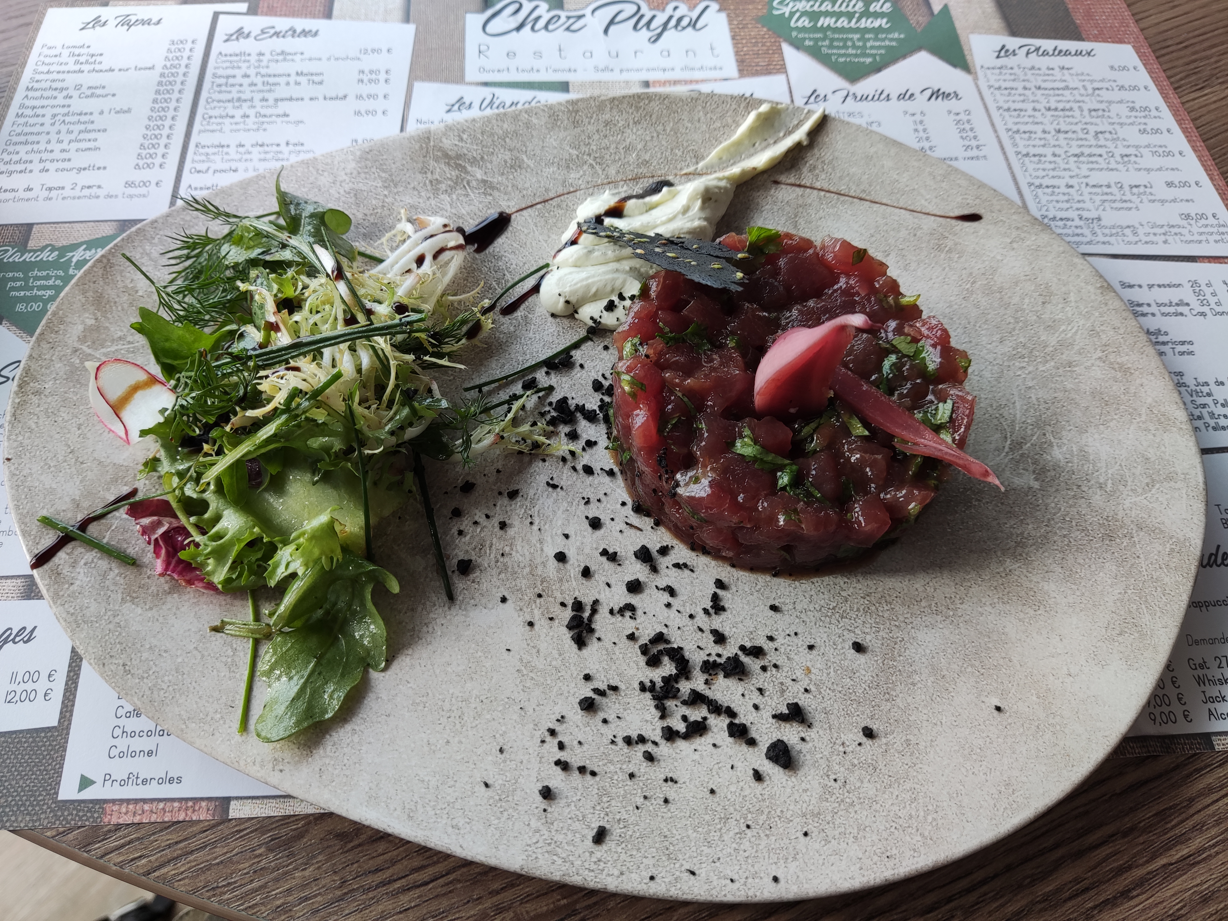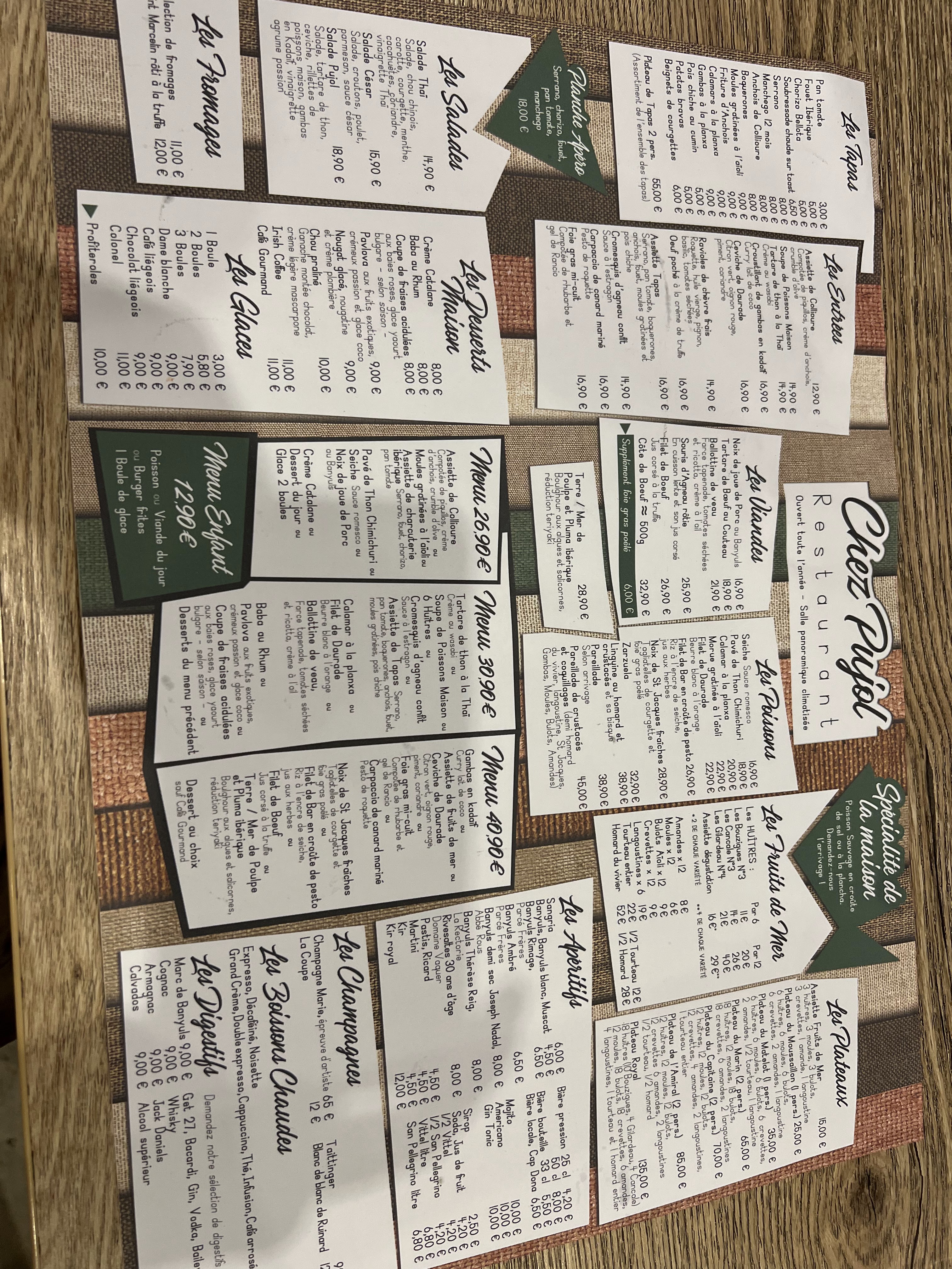 Étant en séjour dans le secteur nous sommes venus déjeuner chez Pujol , nous avons pris le plateau marin cela à été un régal , présentation parfaite fraîcheur des fruits de mer excellente , le personnel très accueillant à l'écoute du client . Nous reviendrons sans problème et nous le recommandons . Terrasse au complet à l'intérieur à l'étage un baptême