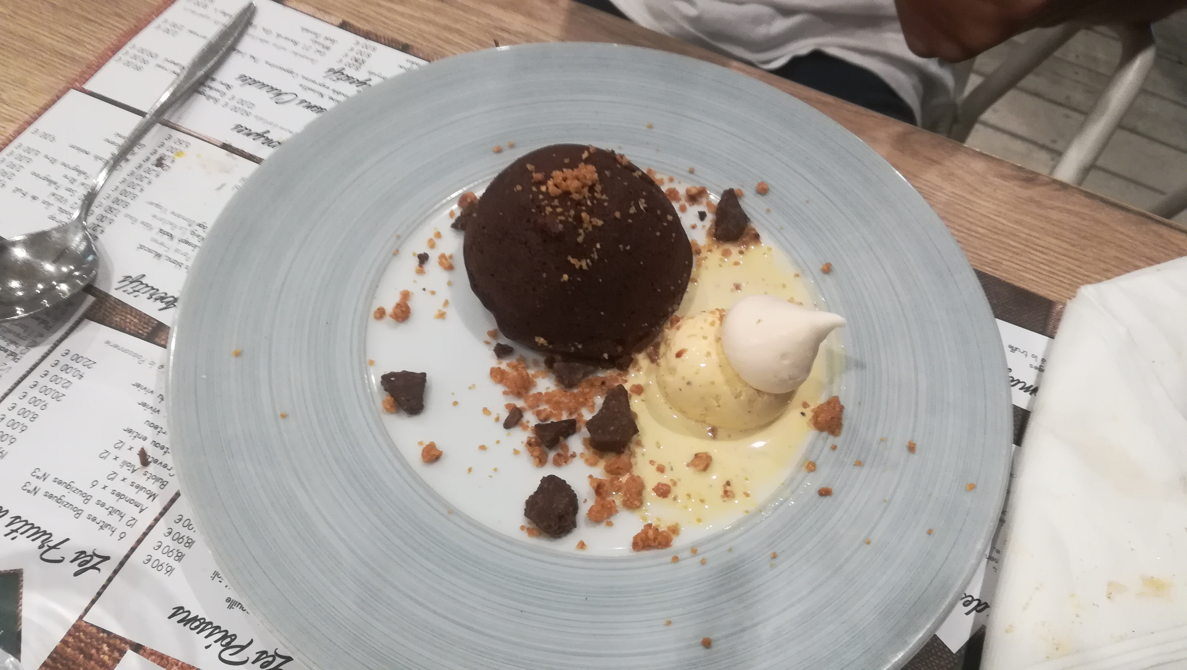 Restaurant très sympa (plats et service). Nous y allons à chaque fois avec plaisir. J’ai été déçue par mon dessert (entremet chocolat, praliné) mais l’ensemble reste correct.