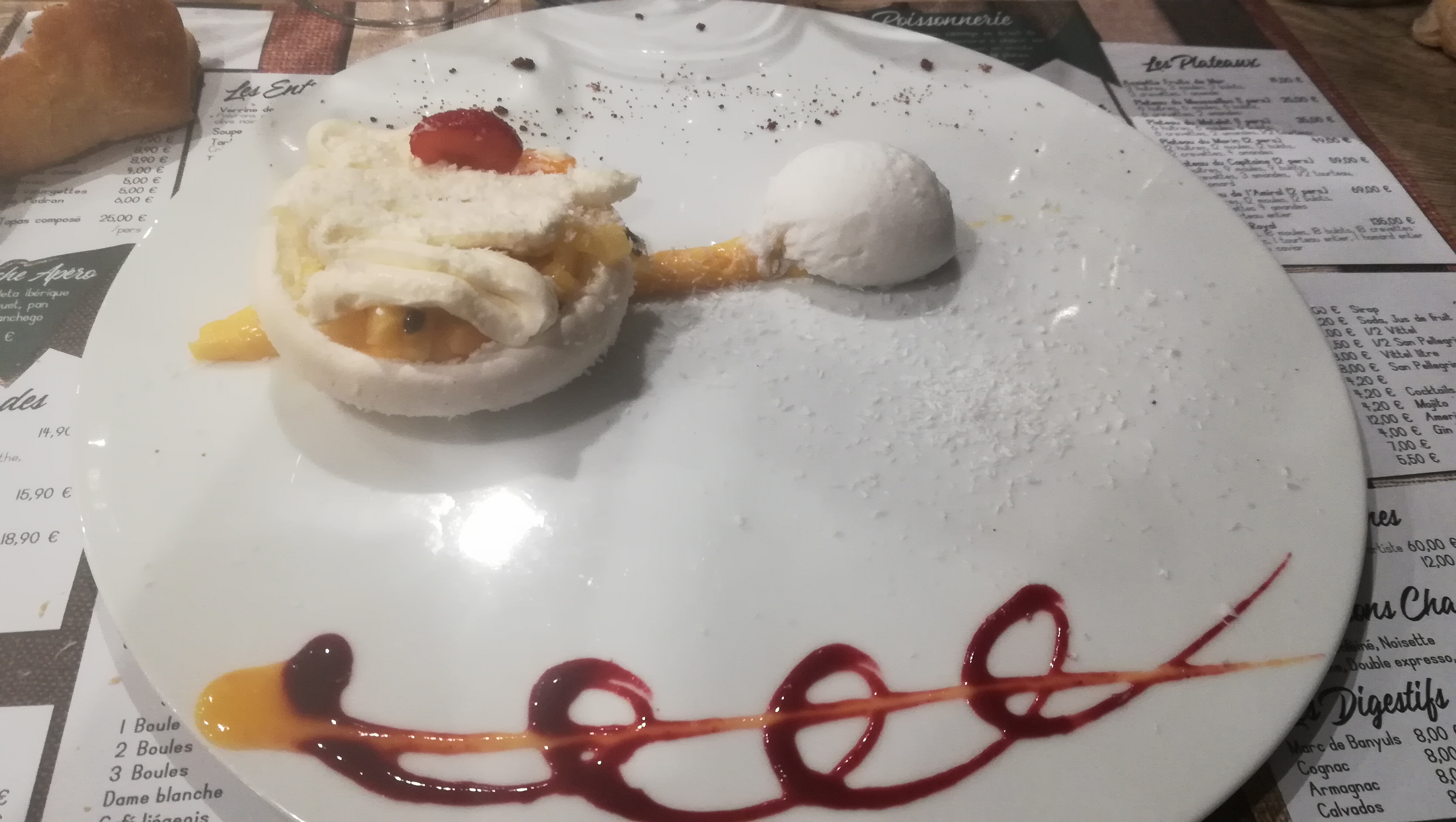 Exceptionnel à tous les niveaux ! La pavlova aux fruits exotiques est divine...