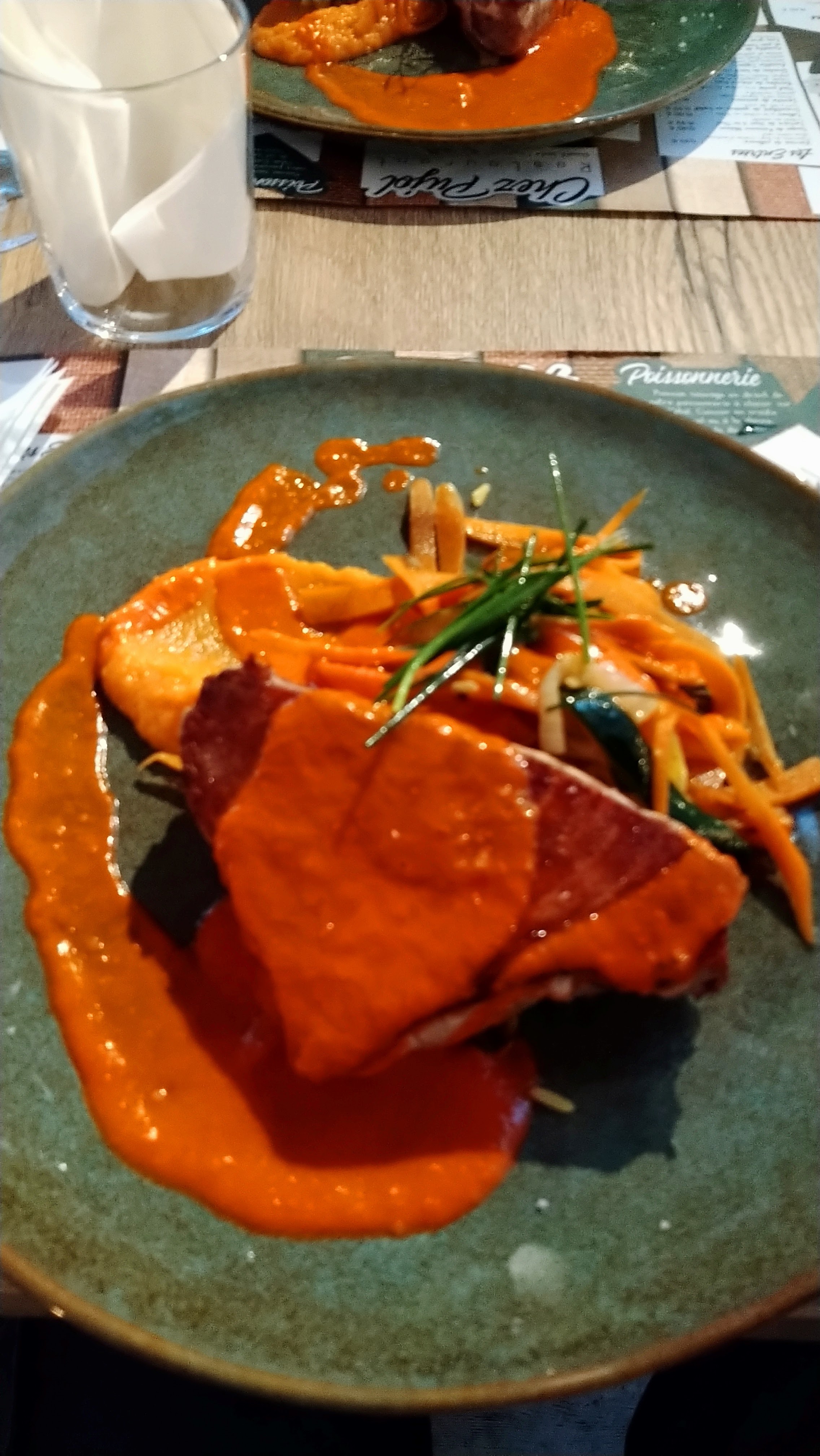 Première expérience dans ce restaurant, Qualitatif et quantitatif Les menu valent plus le coup que prendre un plat simple. Nous étions trois deux menus et un plat simple. L’entrée peut servir de plat si vous n’êtes pas un gros mangeur Le plat très heathly, avec une bonne cuisson du poisson et de bon accompagnement adéquate. Très bon service, professionnel, a l’écoute du client. N’hésitez pas à les appellez si vous vous un conseil notamment si vous voulez un verre de vin. Pour le prix c’est un très bon restaurant au tester au moins une fois, vous ne le regretterez pas.