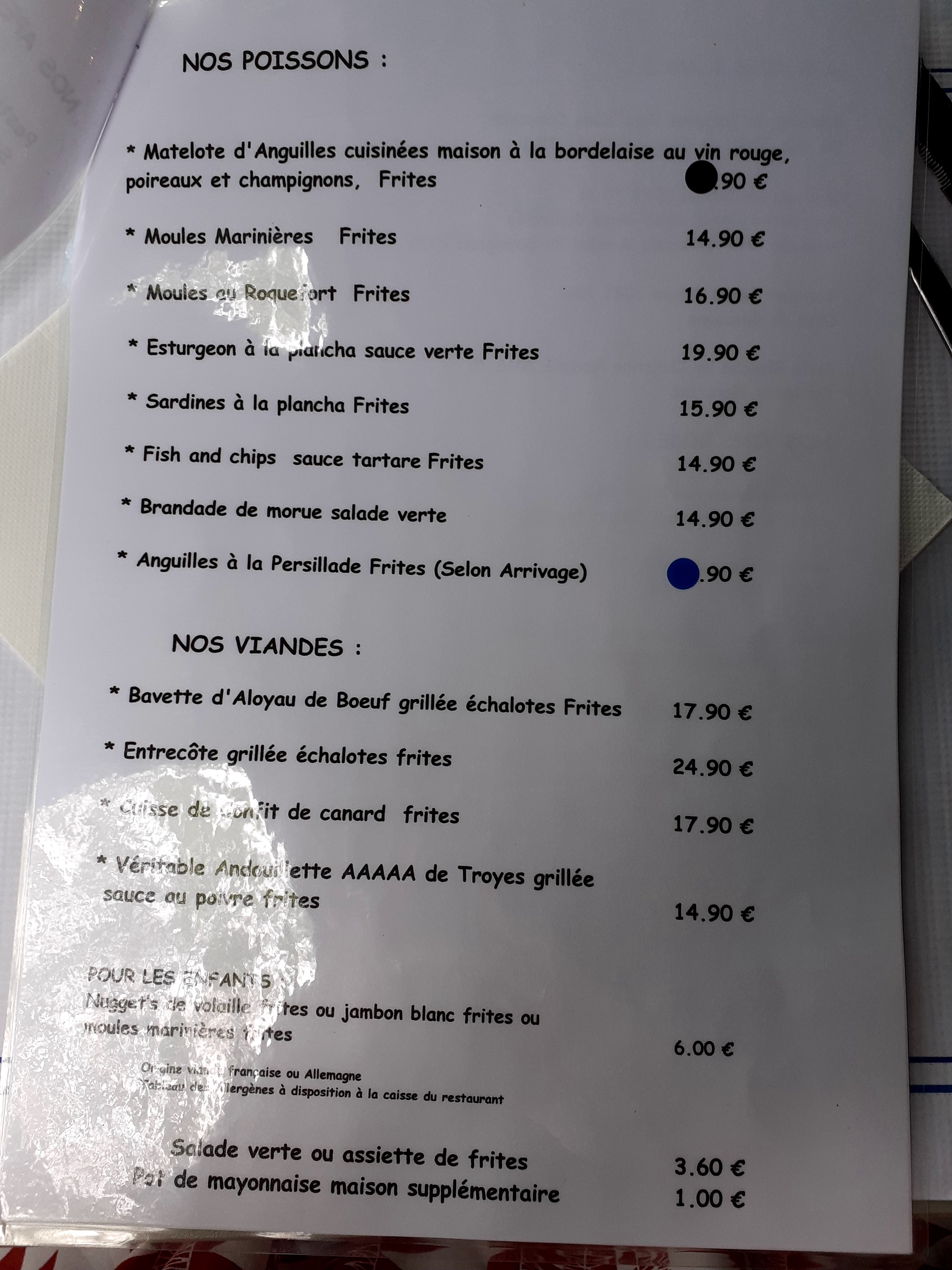 Moyen, on y est allé un lundi ,beaucoup de produits manquants, carte, du coup, assez réduite, frites bonnes , anguilles beaucoup trop grasses, beaucoup de produits metro, peu de faits maison. Lieu pas trop entretenu, terrasse et toilettes dans un état un peu fatigué... dommage, le cadre est sympa, cela méritait un peu de rénovation et un chef plus dynamique.