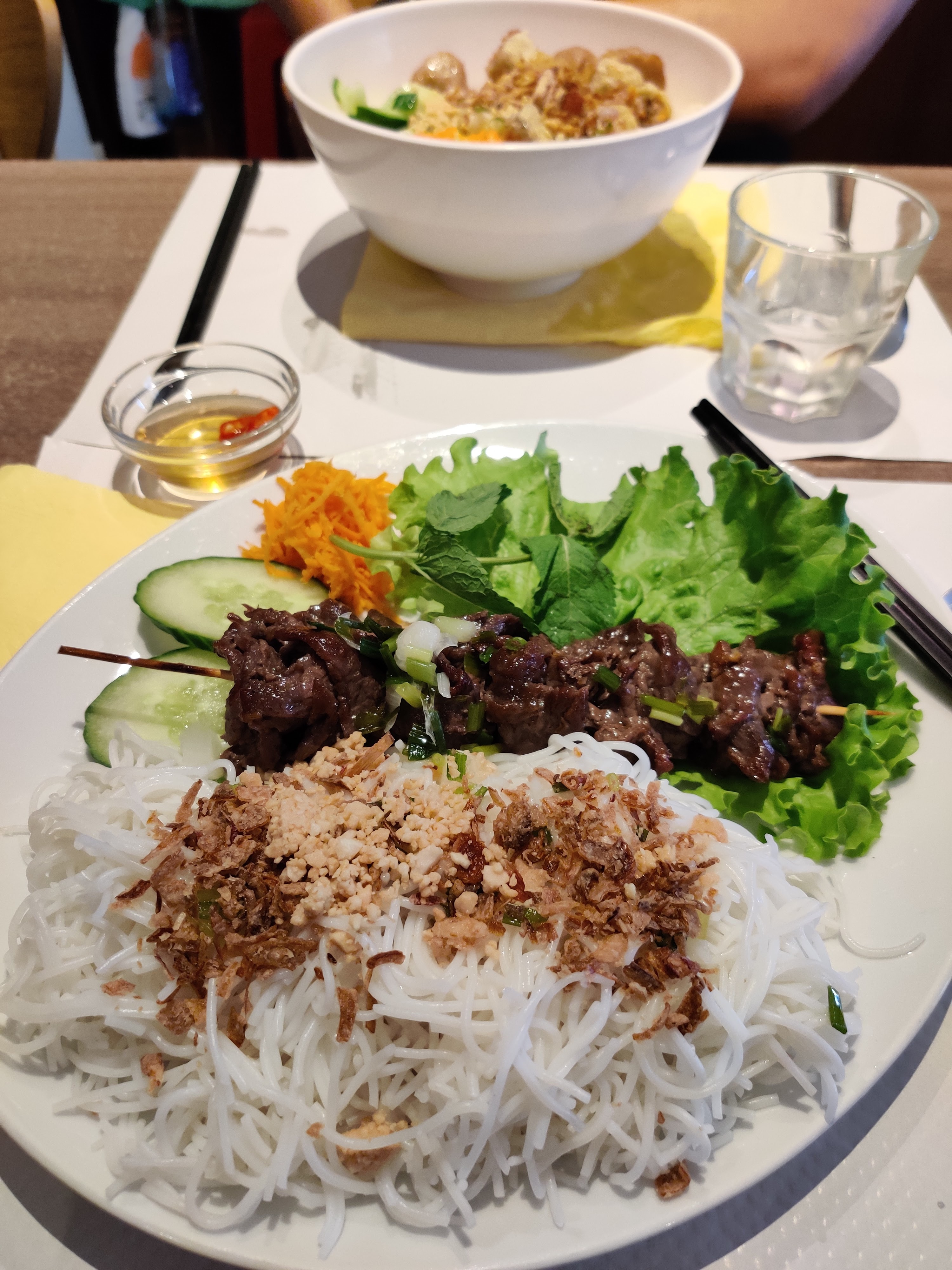 Le restaurant est jolie, mon mari a été très satisfait, par contre il y a très peu d option végétarienne, c est dommage , car j aurai bien aimer manger une soupe vietnamienne végane. Le restaurant est agréable .