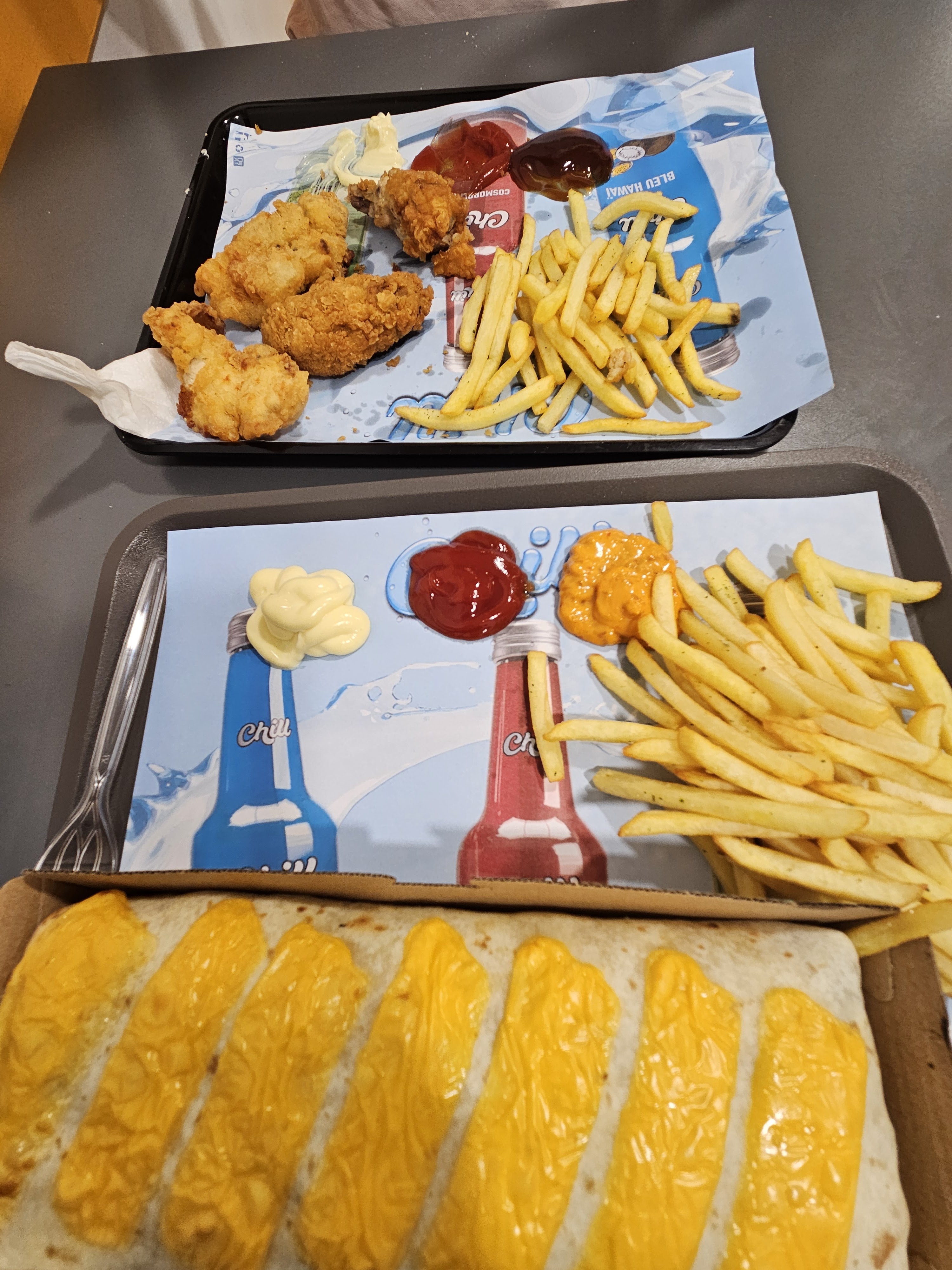 C'était excellent trop bon .on a pris tacos poulet curry et v hachée. Et des nuggets avec des frites. Je recommande vivement