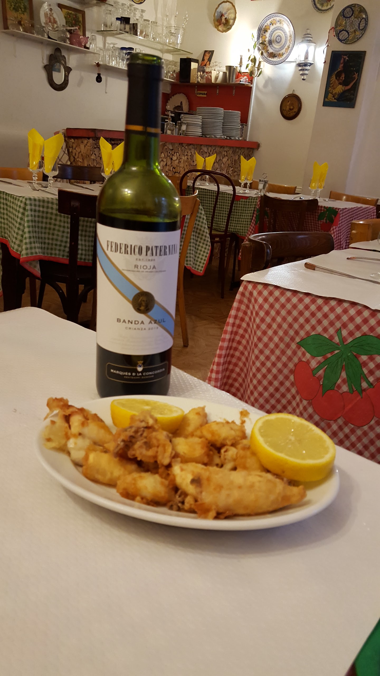 Un petit resto espagnol du quartier très sympa, les prix abordables, la cuisine simples, familiale, savoureuse et potion généreuse. Un pot de 1/2 sangria, une pilent di padrone, 1 encornet frit et 1 paella pour 2, on finit par 33 euros par personne, c’est très bien ! La cheffe Ramona à un cœur gros comme son paella!