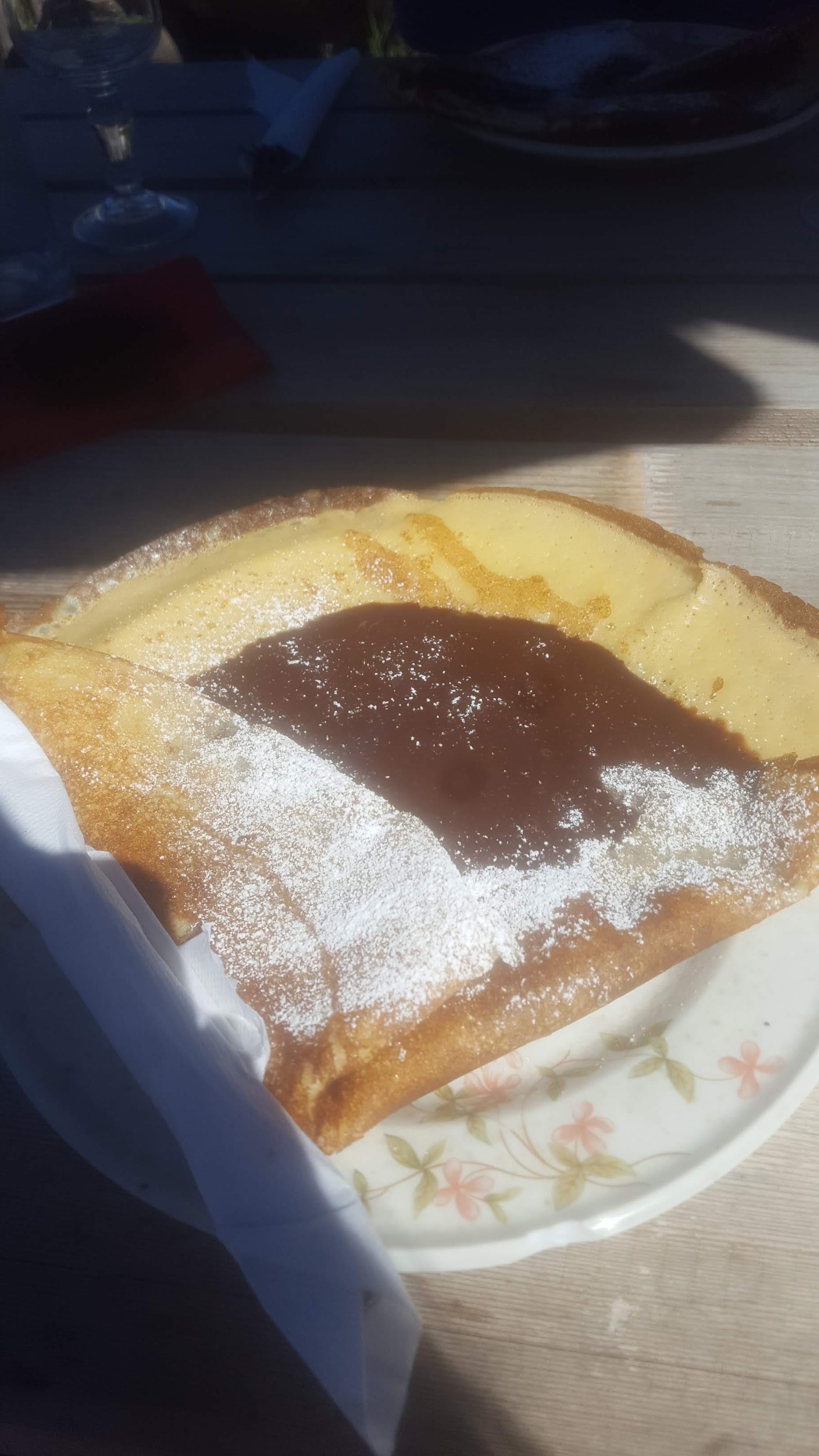 Restaurant d'altitude avec une décoration typique des Alpes. La serveuse était adorable et disponible bien que nous soyons arrivés tardivement en fin d'après midi. Nous avons pu boire des rafraichissement et gouter une crêpe à la confiture. Elle était gouteuse et bien garnie ! C'est appréciable quand dans d'autre restaurants on peine parfois à trouver la garniture.