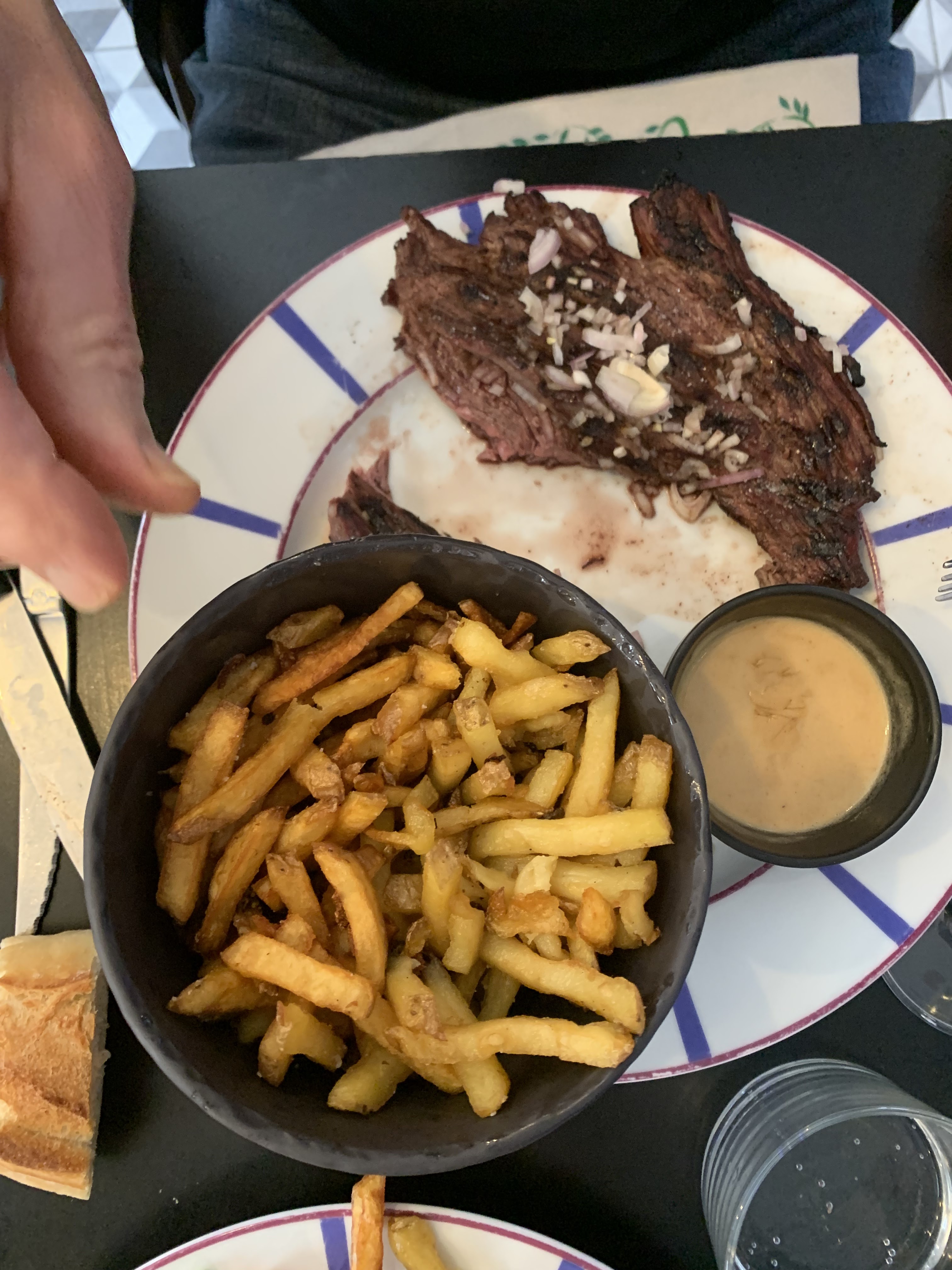 Points positifs : - Service très sympathique - Grosses portions - Super confit d'oignons. Points à améliorer : - Nous avons payé 26 euros pour une entrecôte limousine très moelleuse, nerveuse et mal préparée. L'entrecôte était accompagnée de frites détrempées et d'une ratatouille fade - La morue n'était pas bien assaisonnée avec un côté fade similaire. Conclusion: - Nous ne comprenons pas comment ce restaurant a obtenu autant d'excellentes critiques. Nous considérons le restaurant comme un lieu touristique typique de qualité moyenne.